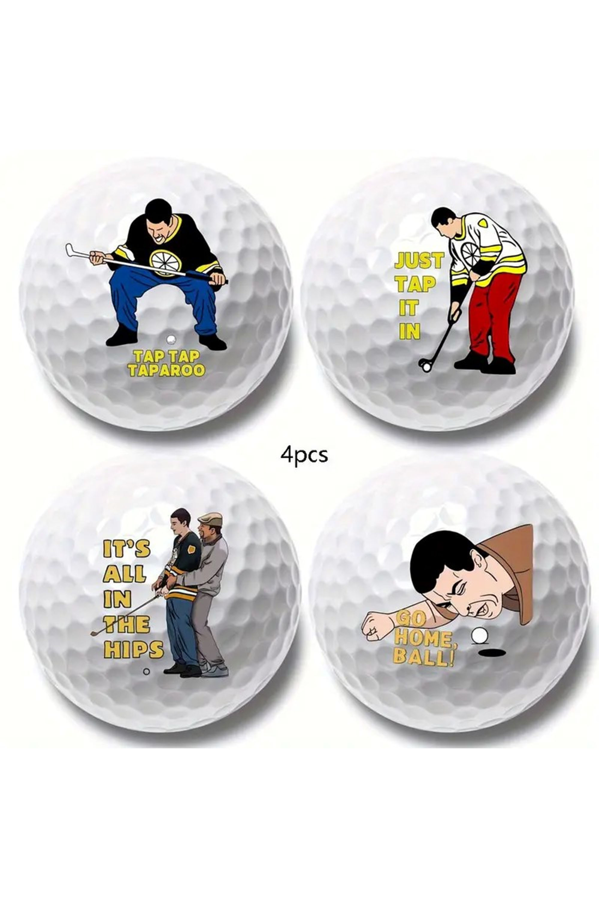 4-Pack Funny Pattern Golf Balls, Novelty Gift for Dad and Boyfriend