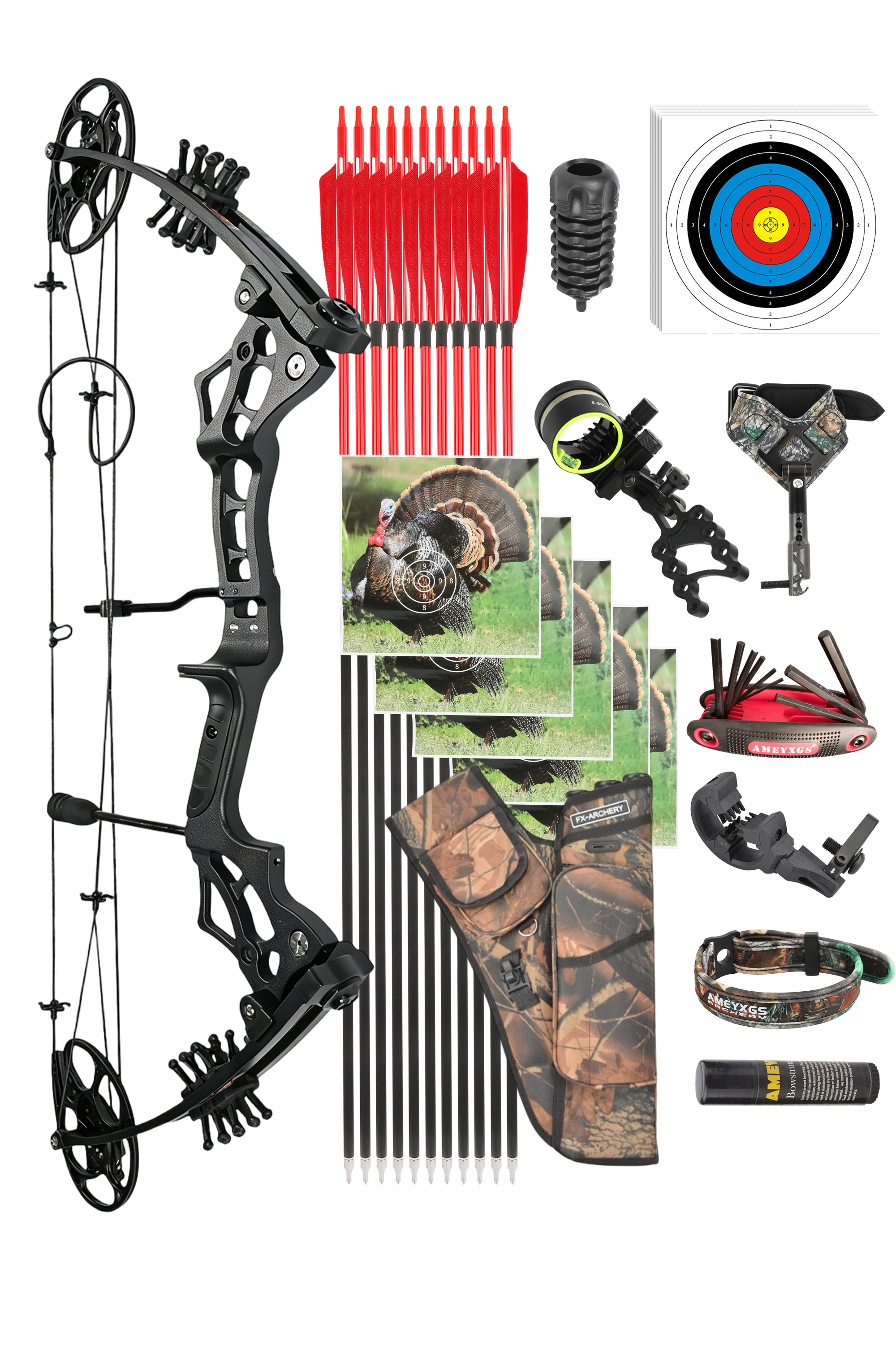 Ameyxgs E8 19-70Lbs Adjustable Aluminum Alloy Compound Bow Set
