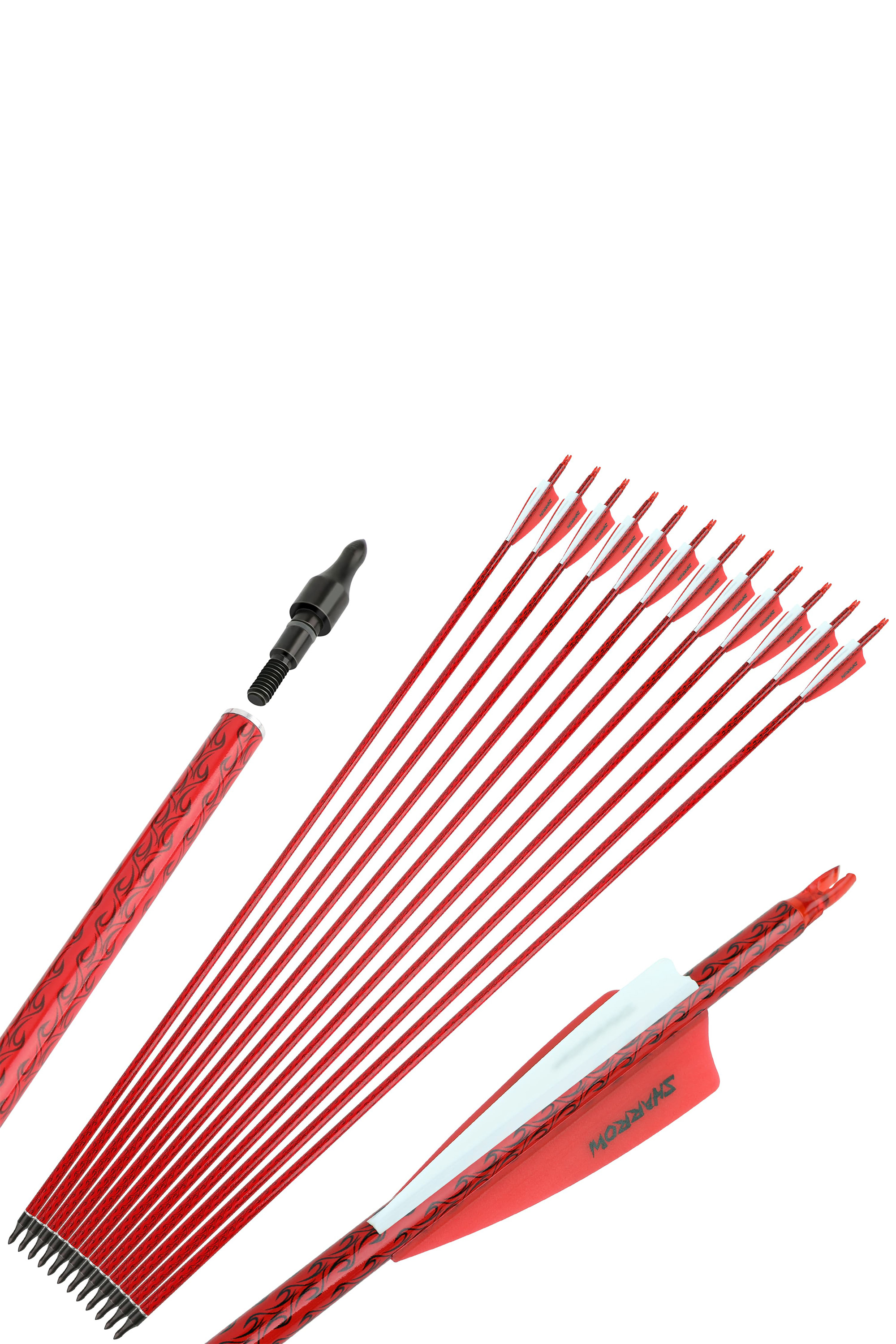 1. The arrow shafts are made of high quality mixed carbon material, good performance, little hand shock and fast speed. 2. The bullet tips are replacement,weight 100 grain,perfect for target practice & outdoor shooting. 3. 4" feathers make the flight always in the right direction. 4. Insert nocks,can be rotated for compound bows,recurve bows,longbows,etc.