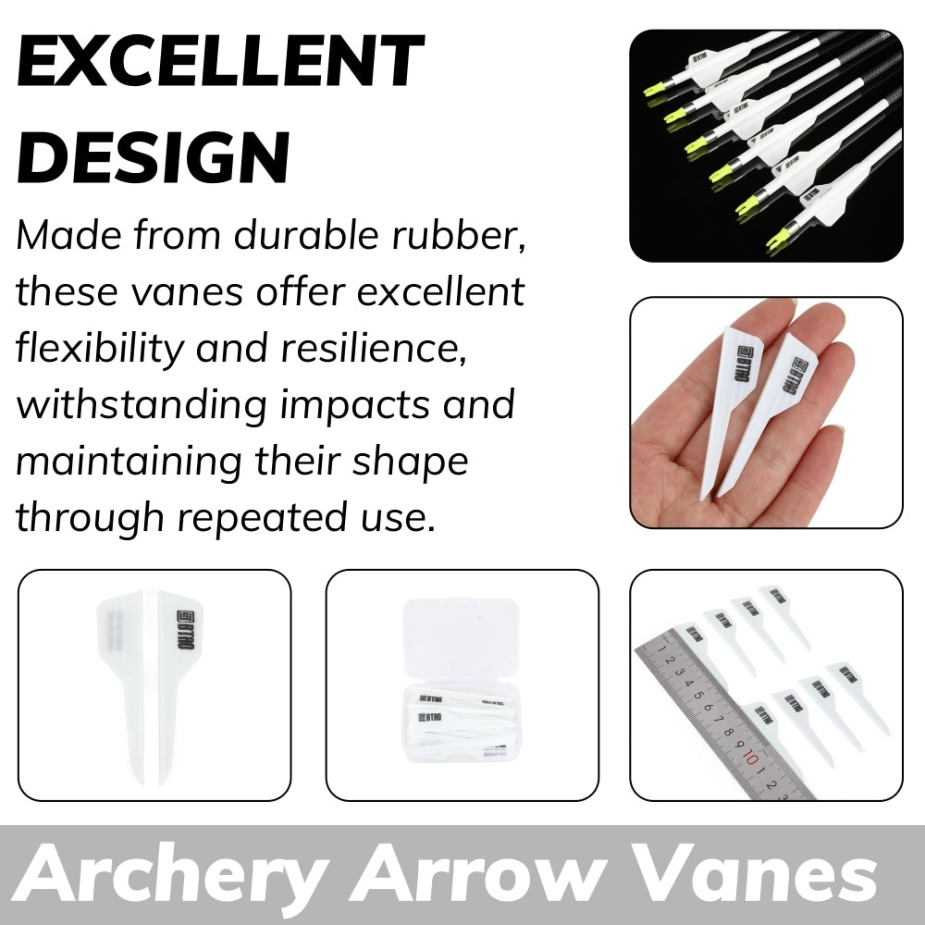 Engineered for durability and consistent flight, these white rubber vanes offer an optimal balance of visibility, flexibility, and lightweight performance. Ideal for fletching and repairs, the 50-piece pack provides exceptional value for archers seeking reliable arrow stabilization.