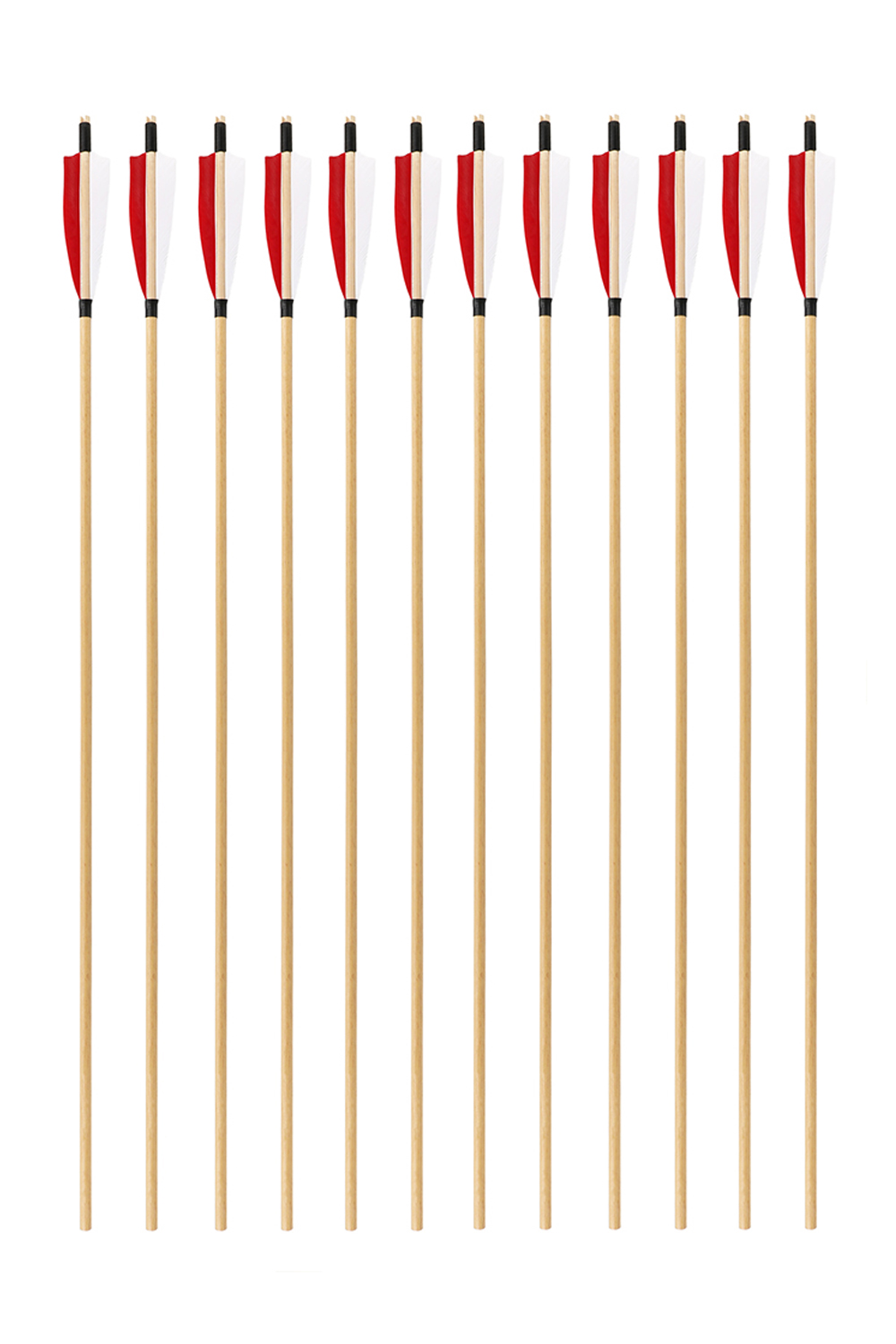 This wooden arrow is a pure handmade white wood archery arrow with 3 real feathers on the fletching, good performance, less hand shake and fast speed. Suitable for recurve bows and longbows.