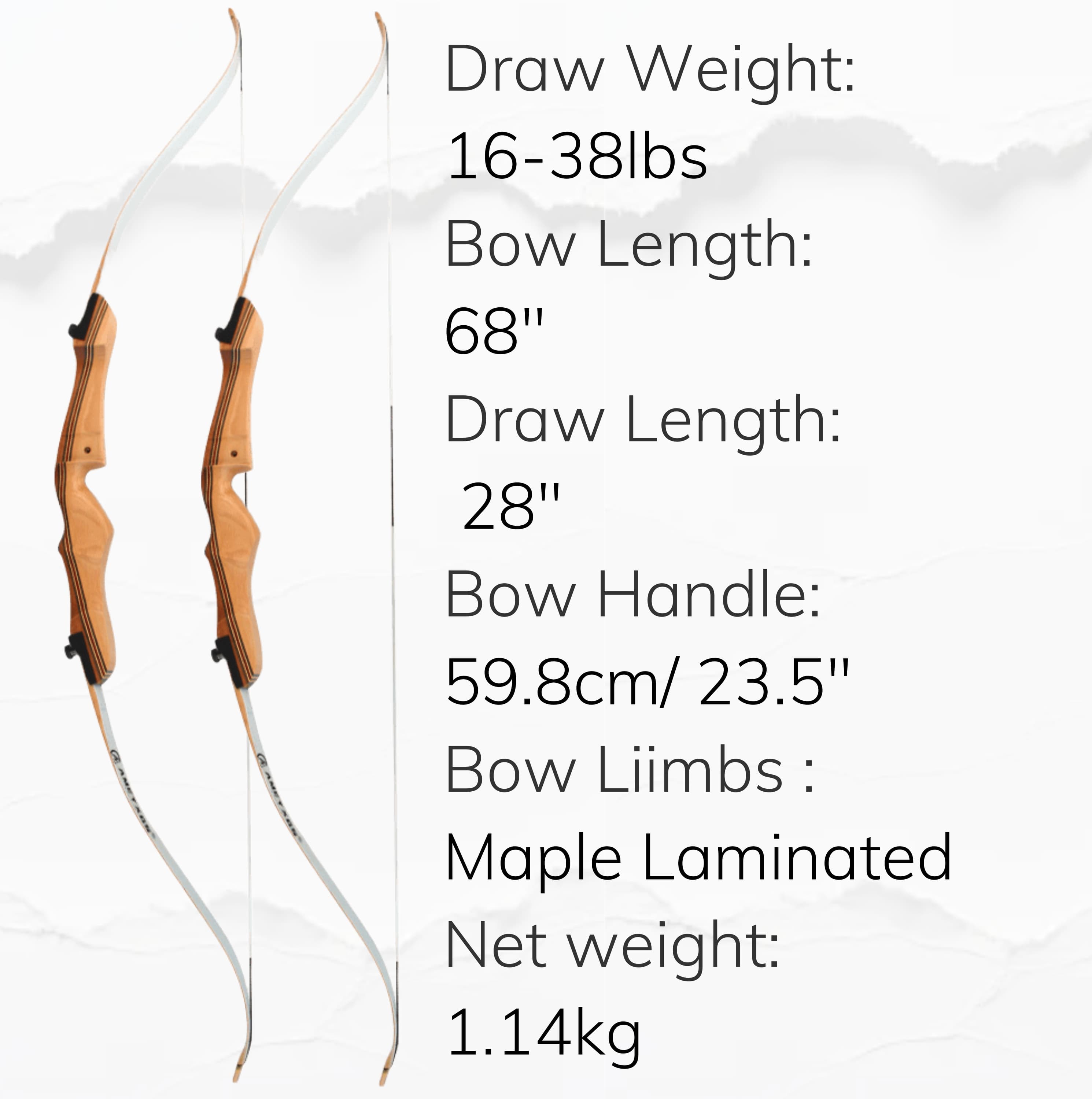 Embark on your traditional hunting journey. This 68-inch split recurve bow set is designed for hunting enthusiasts. The adjustable draw weight range of 16-38 lbs allows you to easily transition from backyard practice to real hunting scenarios.