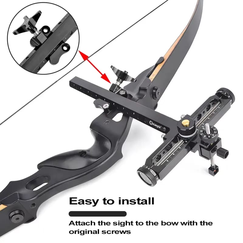 This sight features a CNC aluminum alloy body, making it more sturdy and stable. Surface anodized, lightweight construction, excellent performance, and maximum durability. The sight can be quickly released for vertical movement to obtain a larger adjustment range. Ideal for shooting practice with recurve bows, Olympic bows, or hunting bows. Helps improve shooting accuracy.