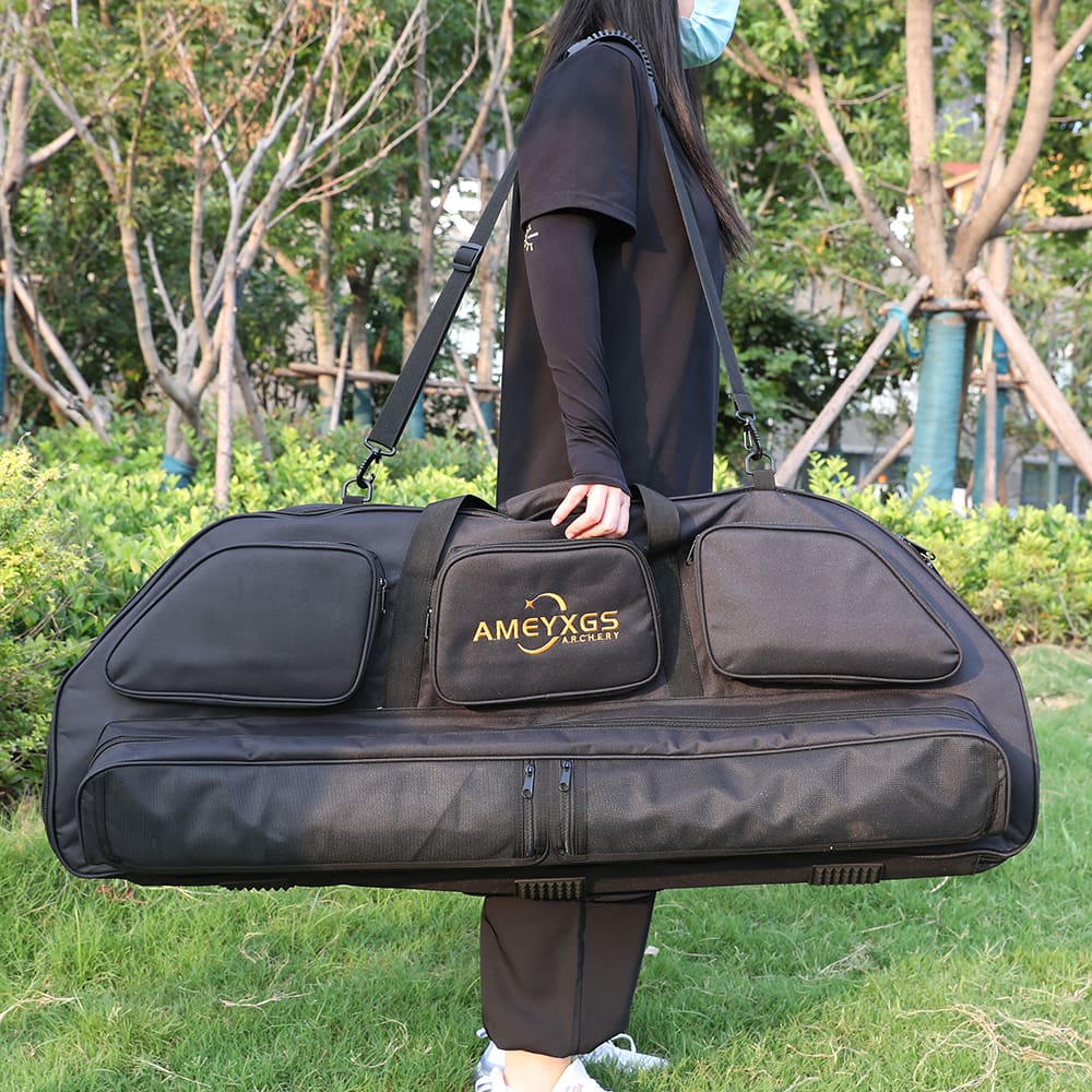 Made from durable canvas material that is both water-resistant and abrasion-resistant, this bag ensures your gear is protected in any weather. The spacious main compartment comfortably accommodates a compound bow, while the convenient quiver pocket easily stores a quiver or quiver box. Additionally, this bag features padded handles and a shoulder strap for easy carrying. Perfect for hunters of all levels, this bag can store not only your bow and arrows, but also other personal items such as arrows, boxes of wax, and more.