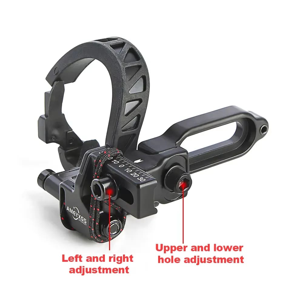 This arrow rest ensures absolutely no contact with the arrow fletchings and is made from precision machined aircraft grade aluminum alloy with durable stainless steel hardened components. The V-shaped arrow rest ensures the arrow is always centered.