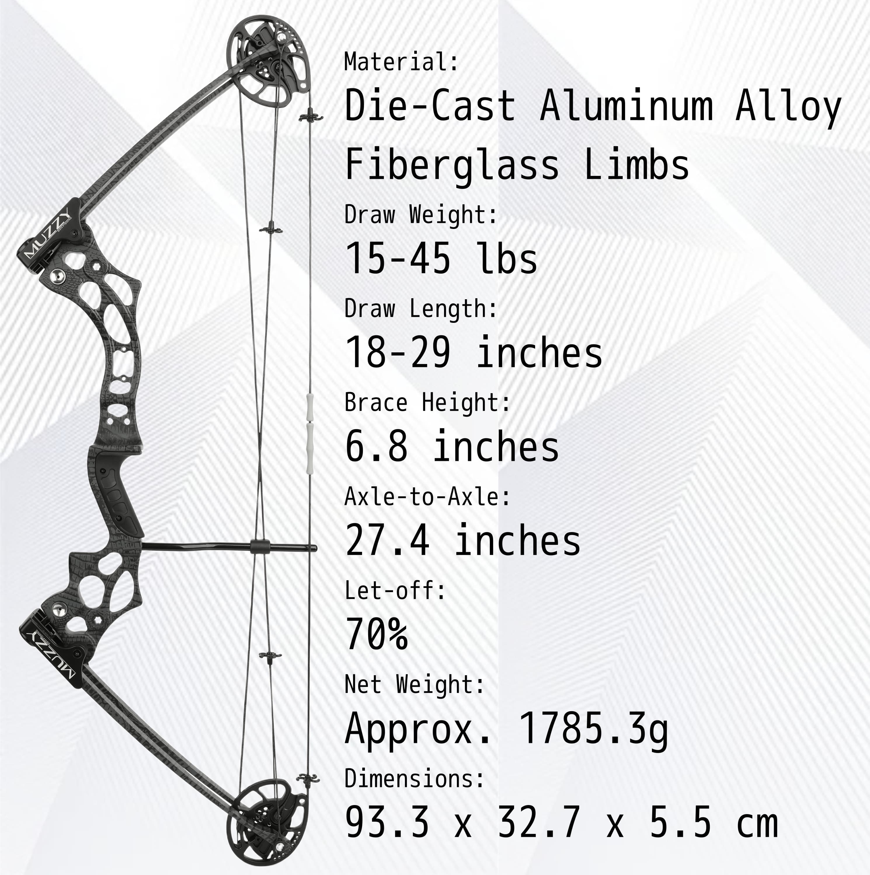 ✅Draw Length: Adjustable from 18 to 29 inches. This broad adjustability accommodates a wide variety of users, from younger archers to adults.