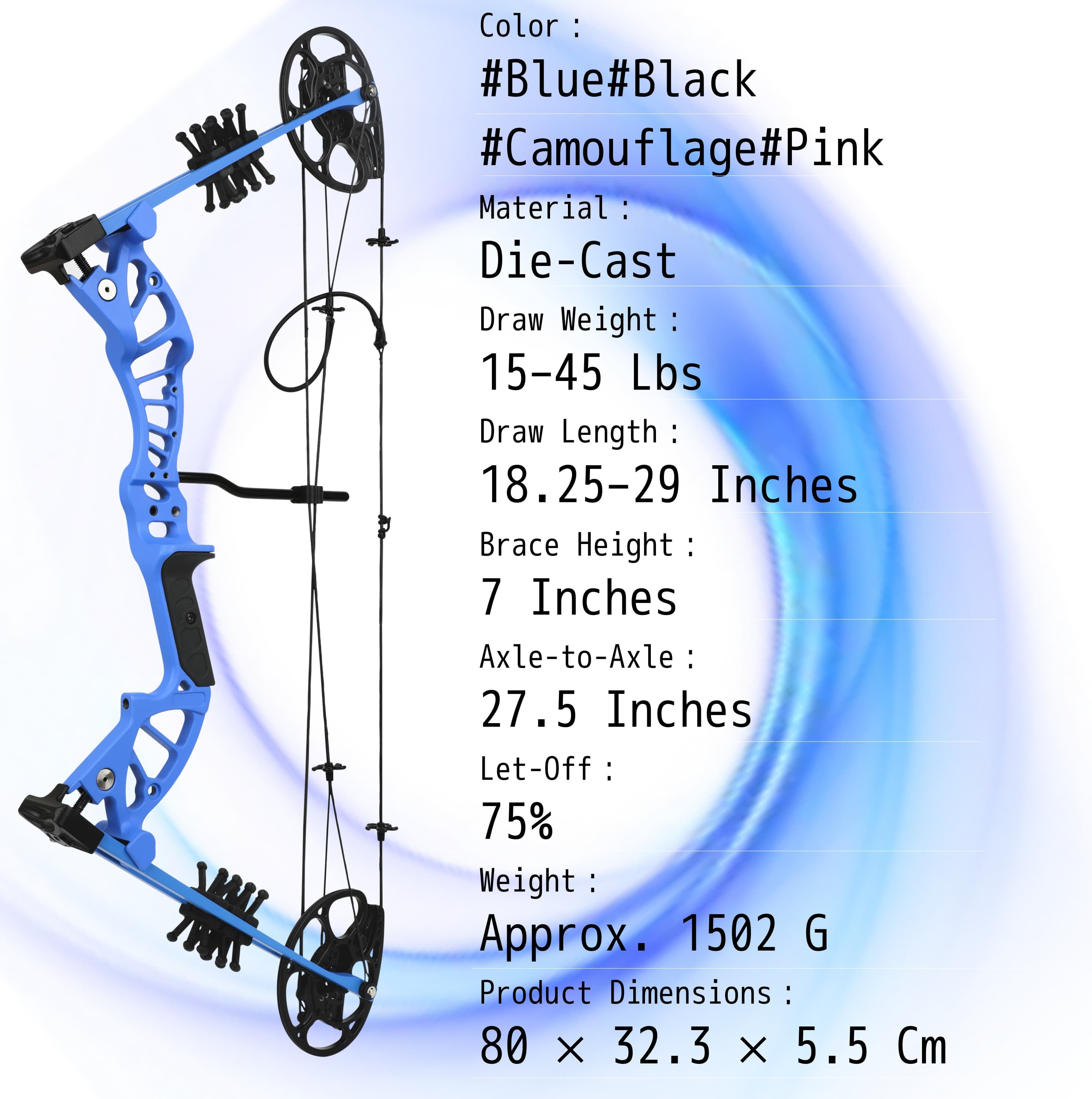 ✅Lightweight Design: Weighing only 1502g, this bow is easy to maneuver, making it perfect for extended shooting sessions without causing fatigue.