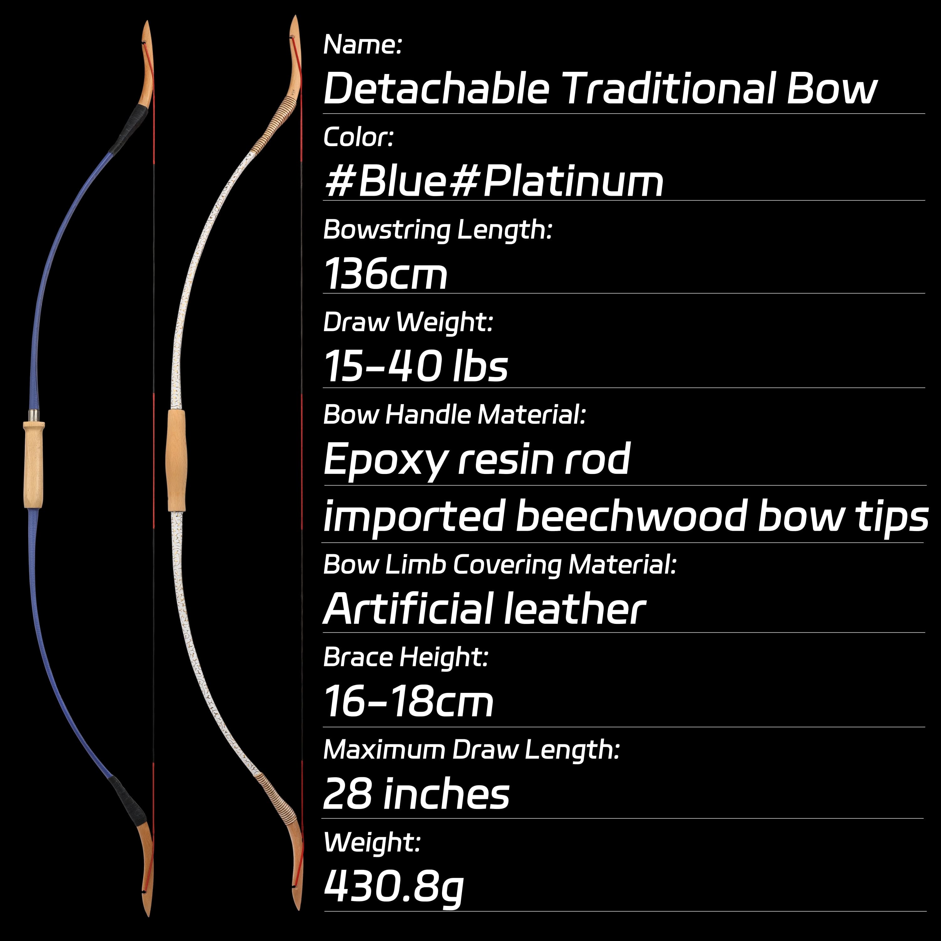 Step into the world of traditional archery with the 53-inch Traditional Takedown Bow. Whether you're a seasoned archer looking for a reliable upgrade or a beginner starting your archery journey, this bow offers everything you need—adjustable draw weights, a durable and lightweight design, and the beauty of traditional craftsmanship. Built for both right-handed (RH) and left-handed (LH) archers, this bow is versatile, powerful, and easy to use.