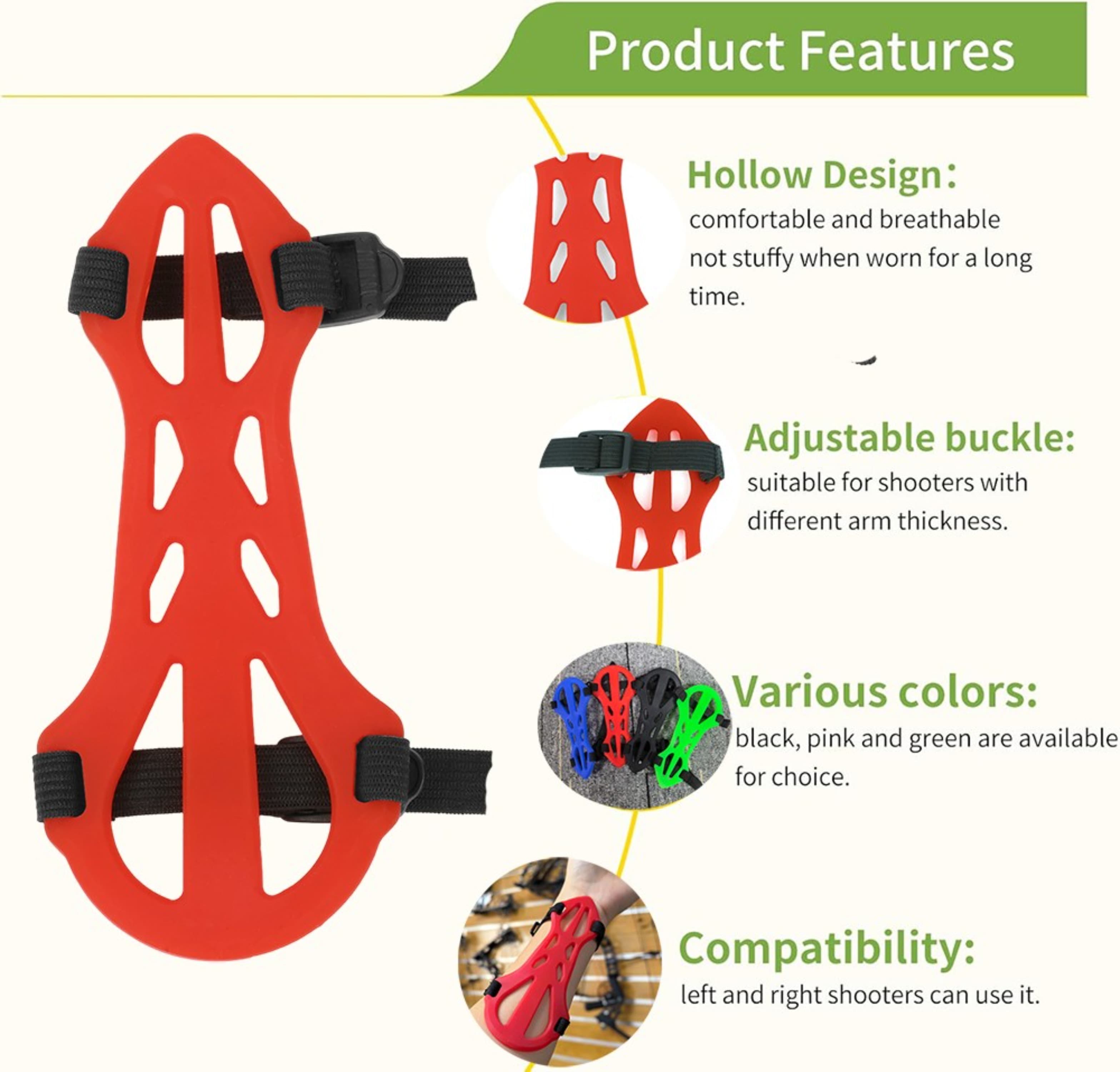 Effective Impact Protection – Made from durable silicone, this guard effectively absorbs the powerful impact from the bowstring upon release, preventing pain, bruising, and skin damage for a safer archery experience.