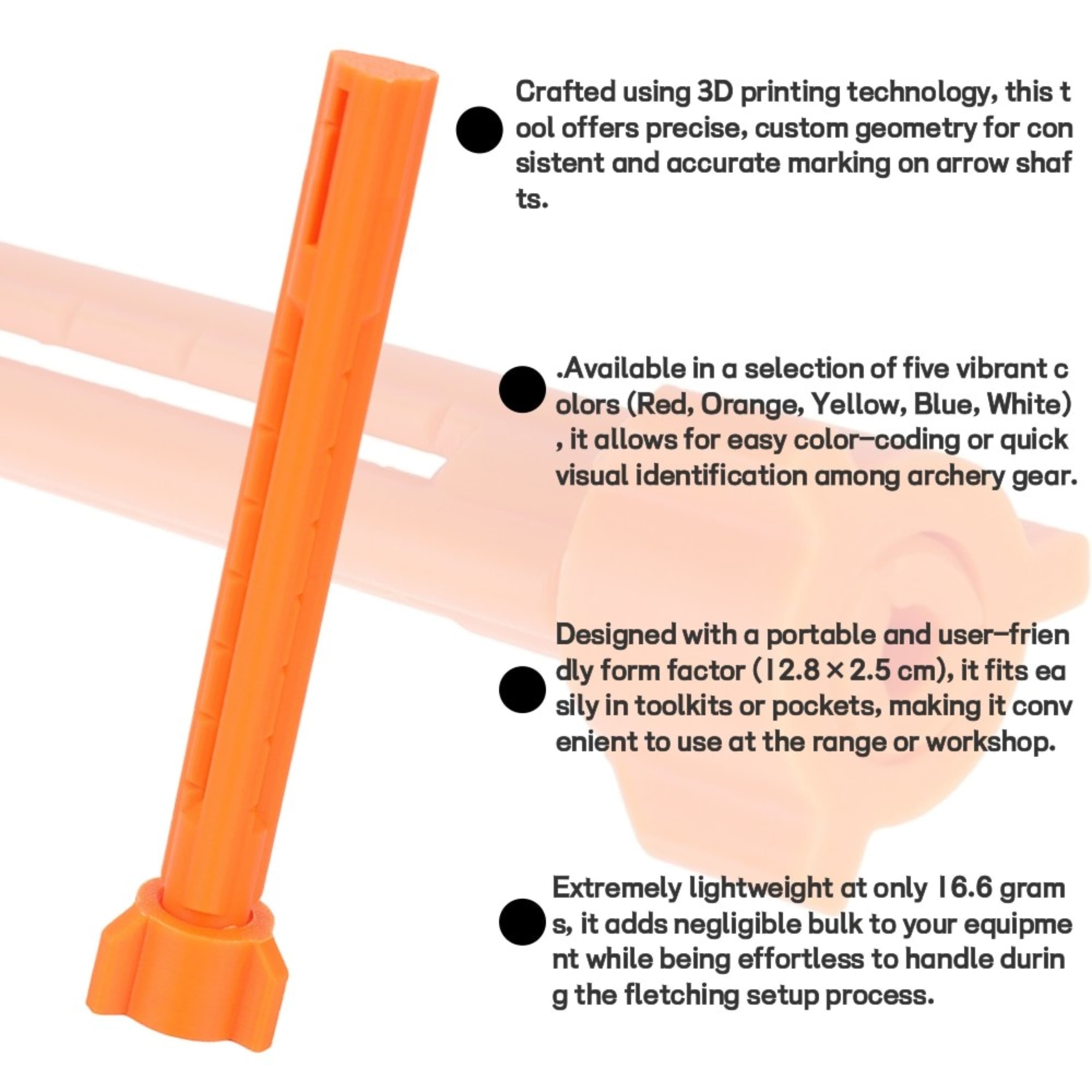 A professional-grade, 3D-printed line marker engineered for the critical task of drawing perfectly straight reference lines on arrow shafts. With its precision contours and high-visibility color options, it ensures accurate vane alignment for optimal arrow flight and consistency.