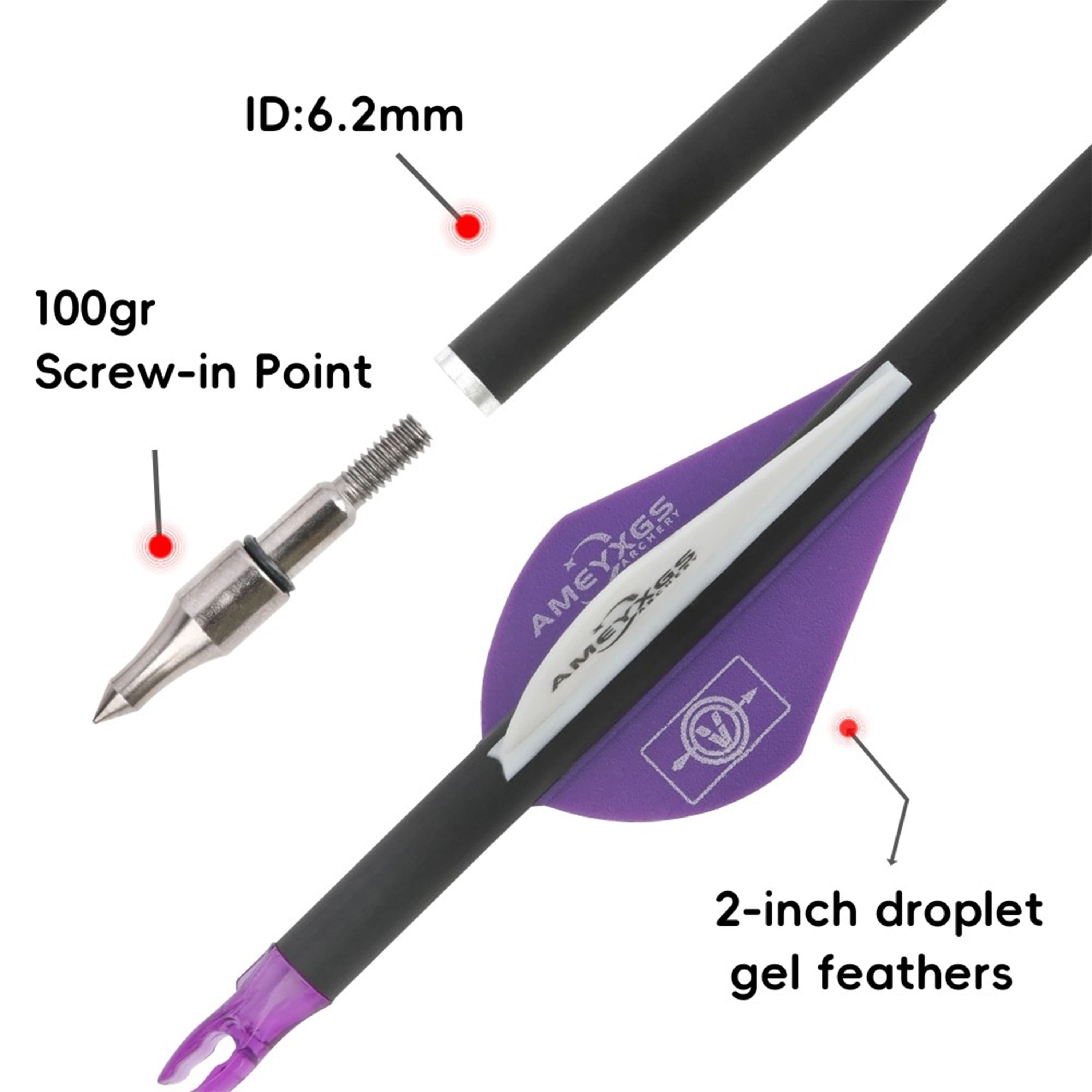 3.Multiple spine options (300/350/400) and grain-matched 100-grain points adapt to different bow draw weights, meeting diverse shooting needs.