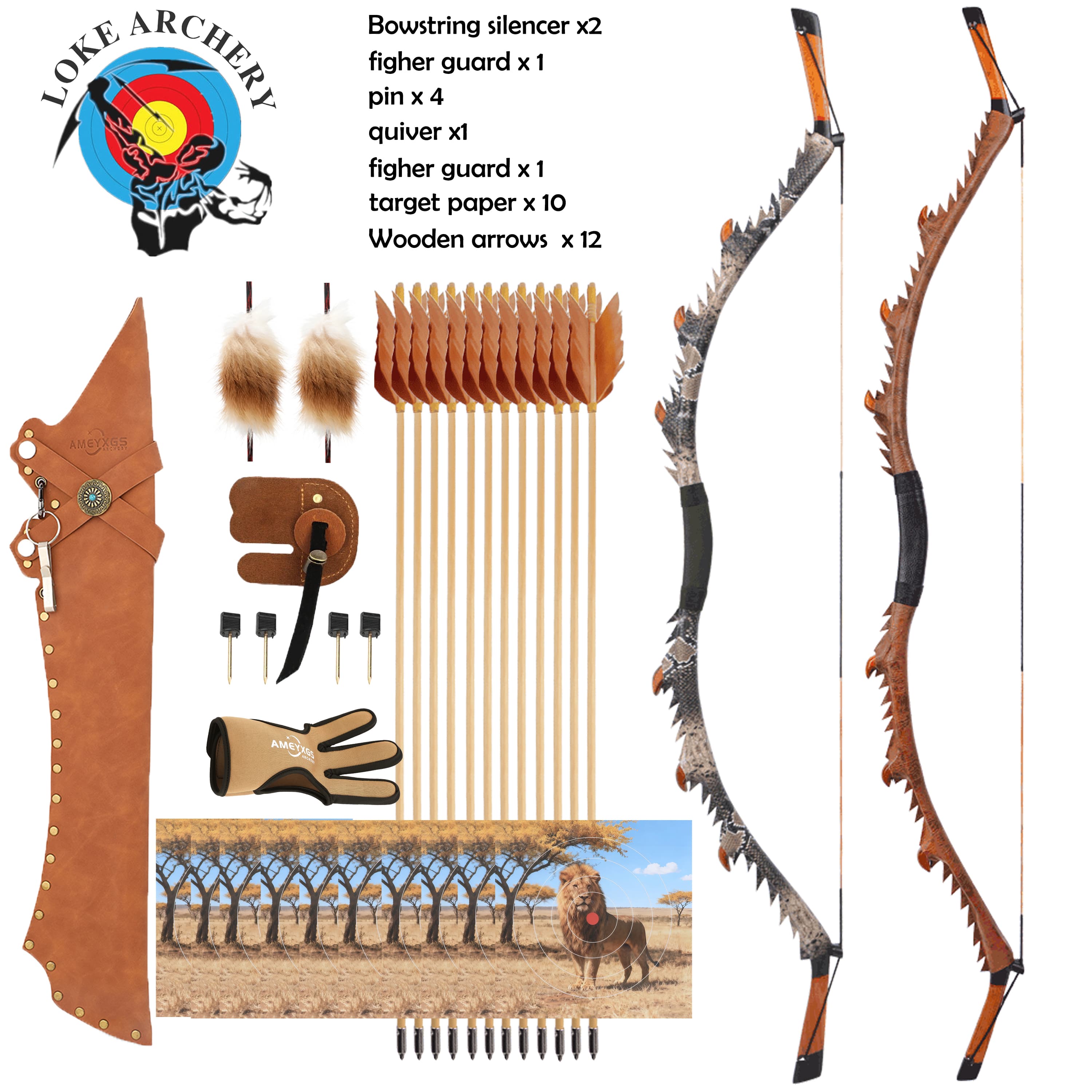 Title: Include “Wooden Takedown Recurve Bow Kit” and weight options