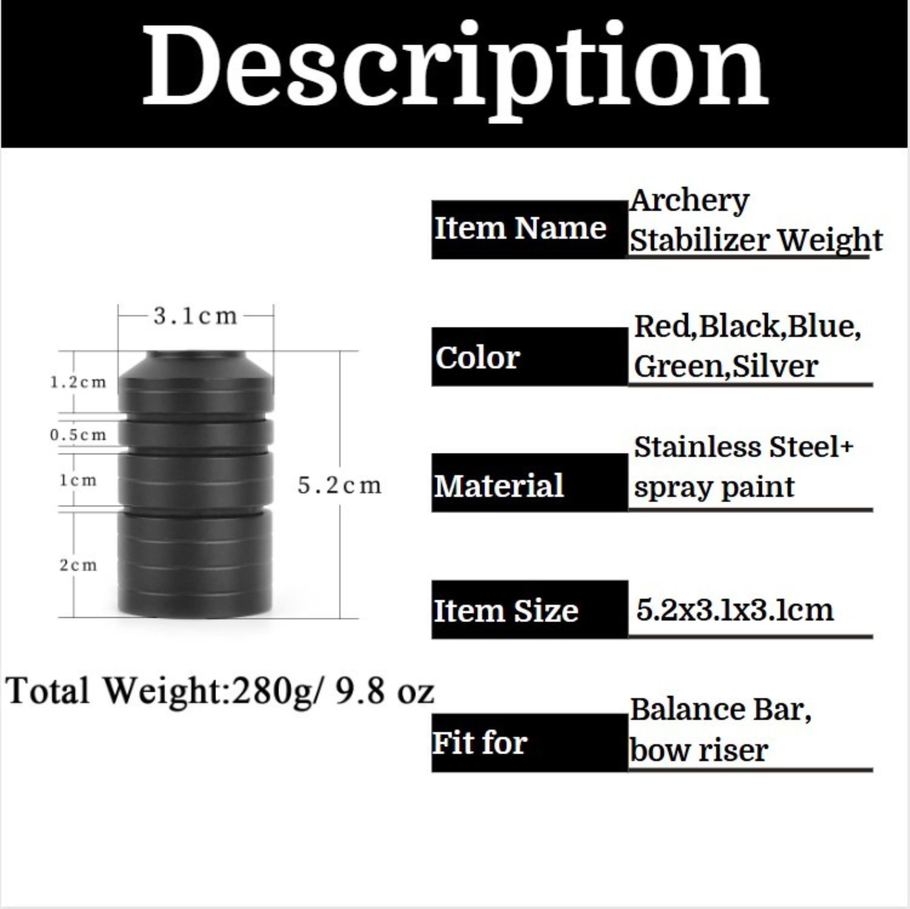 A premium stainless steel weight kit designed for fine-tuning your bow's balance and stability. With versatile weight options and universal thread adapters, this complete set allows archers to reduce vibration, improve aiming steadiness, and achieve optimal performance for any shooting style.