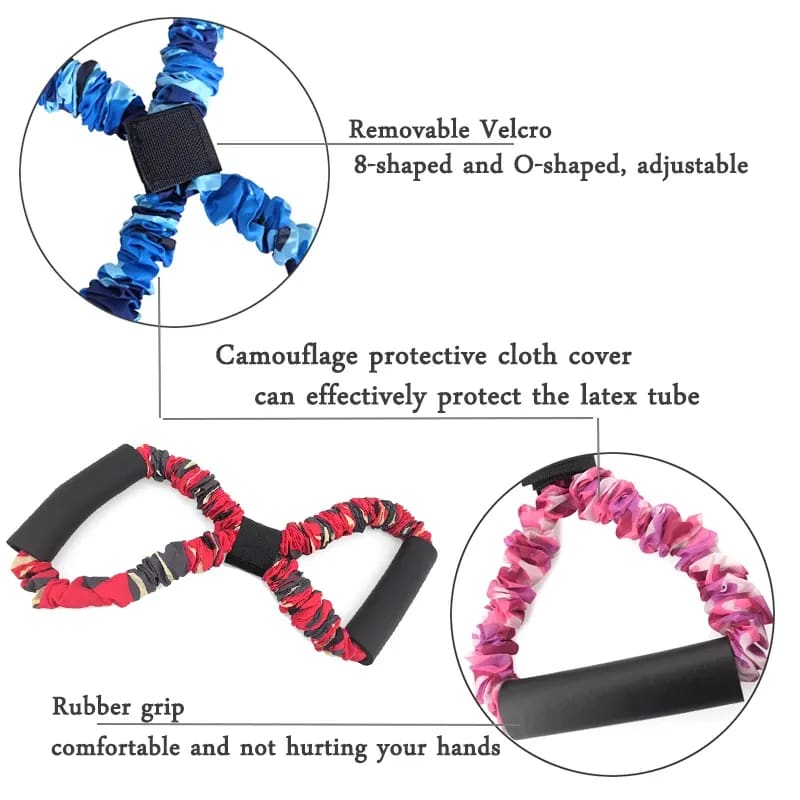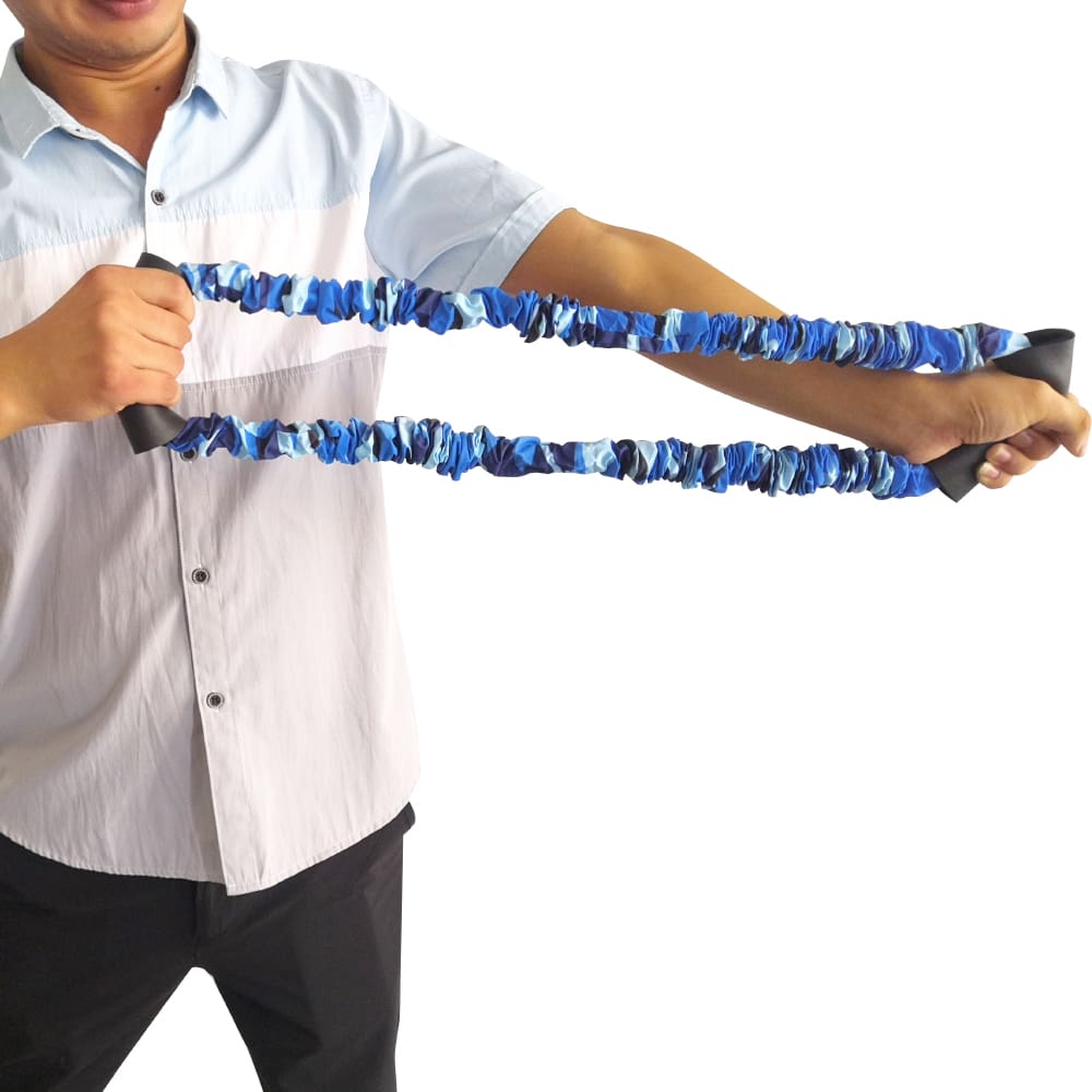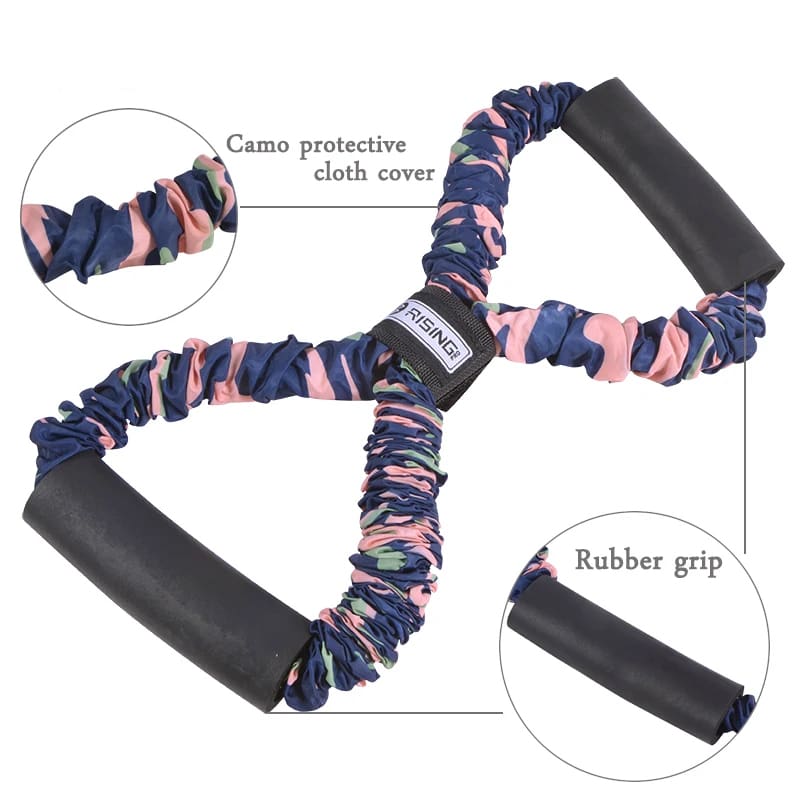 - Made of natural latex, strong, elastic and extensible. Camouflage sleeve prevents injuries to the arm. The soft rubber handle wraps the foam for extra comfort