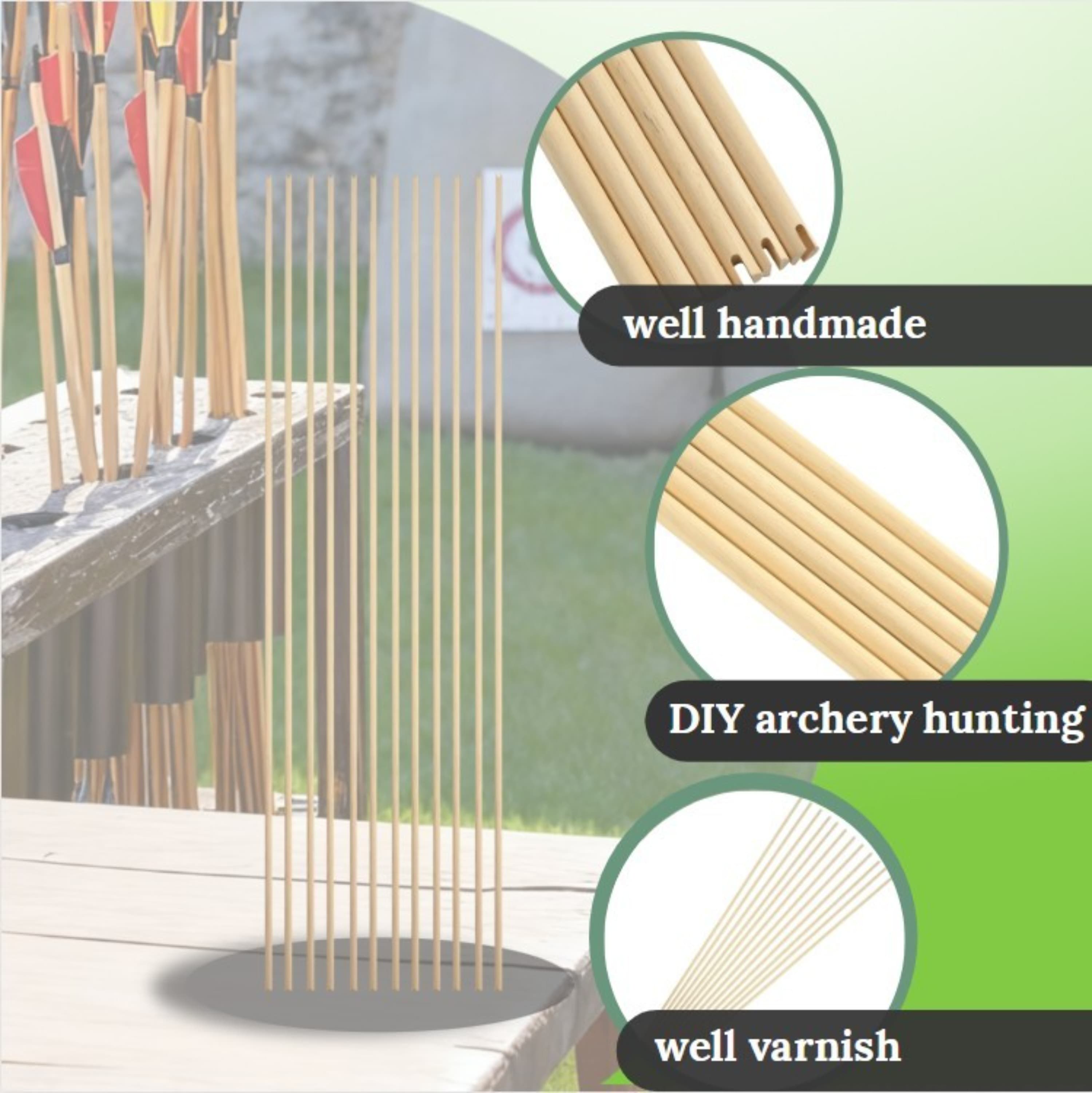 Complete DIY Customization – Supplied as bare wooden shafts without broadheads or fletching, providing the perfect foundation for building your personalized arrows.
