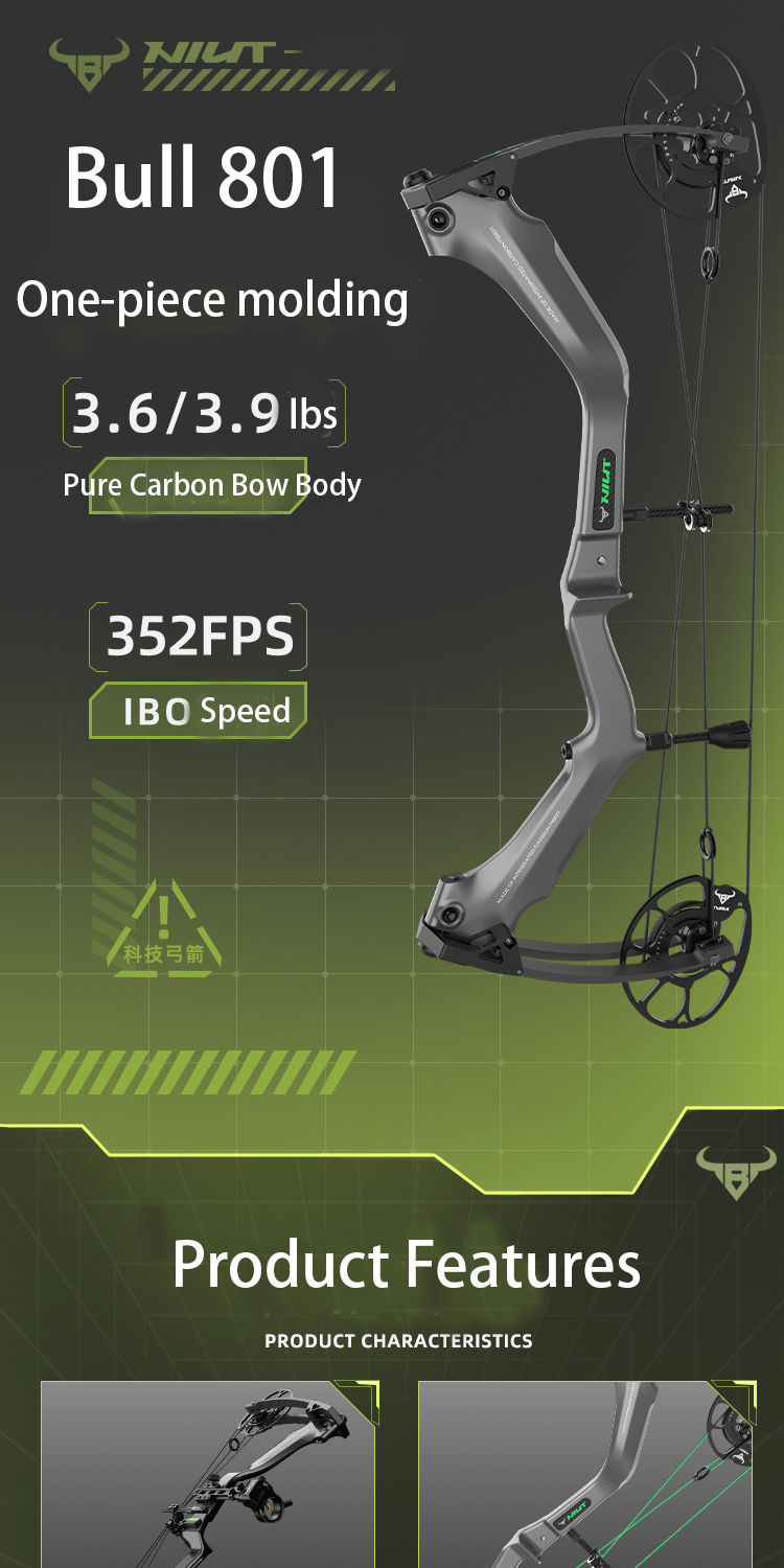 Bull 801 0-80Lbs Pure Carbon One-piece Compound Bow