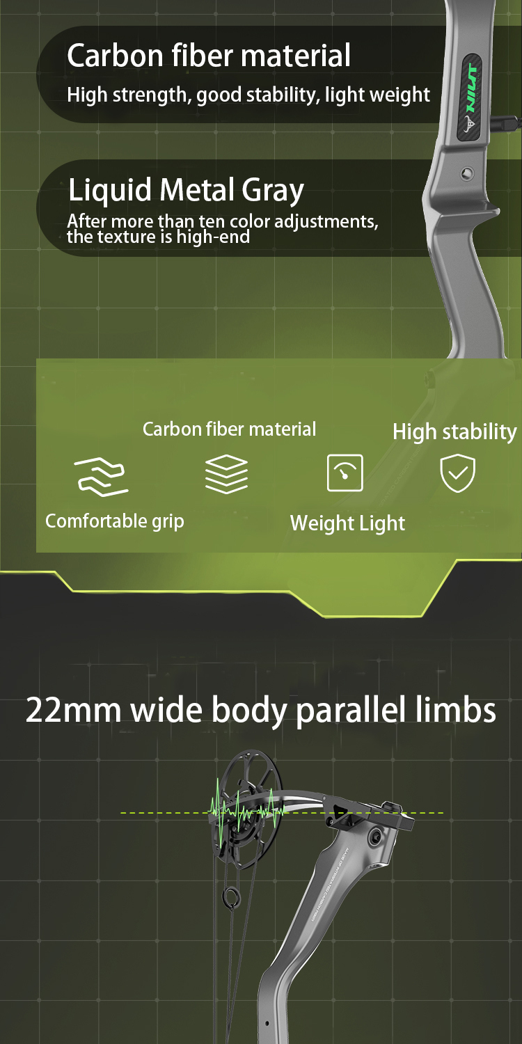 Bow body: Made of carbon fiber CNC machined one-piece bow body