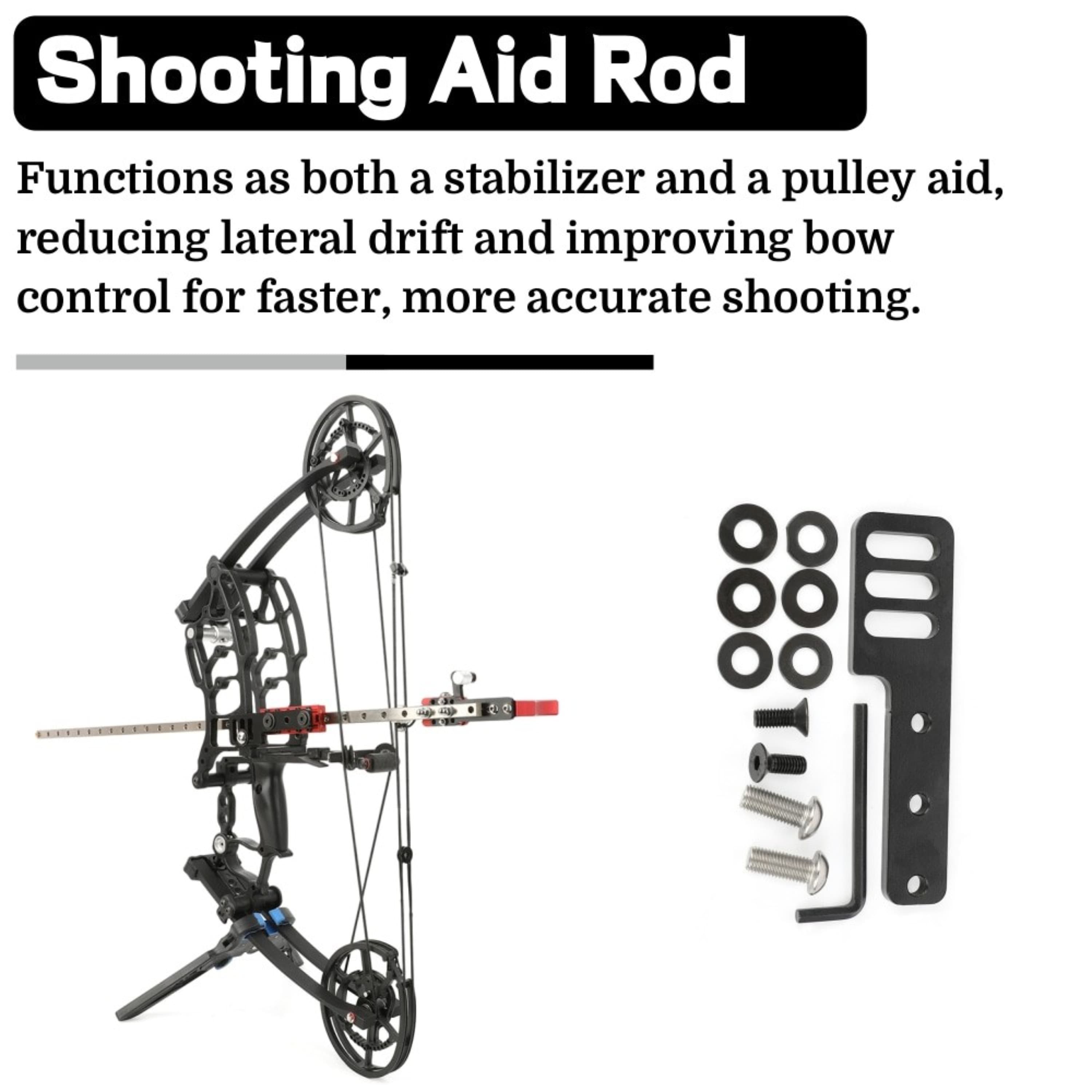 A professional-grade, all-metal auxiliary rod engineered for dual-purpose compound bows. Functioning as both a front stabilizer and a dedicated pulley aid for steel ball shooting, it reduces lateral drift, improves control, and features self-closing jaws for secure, rapid handling—essential for target competition and specialized field practice.