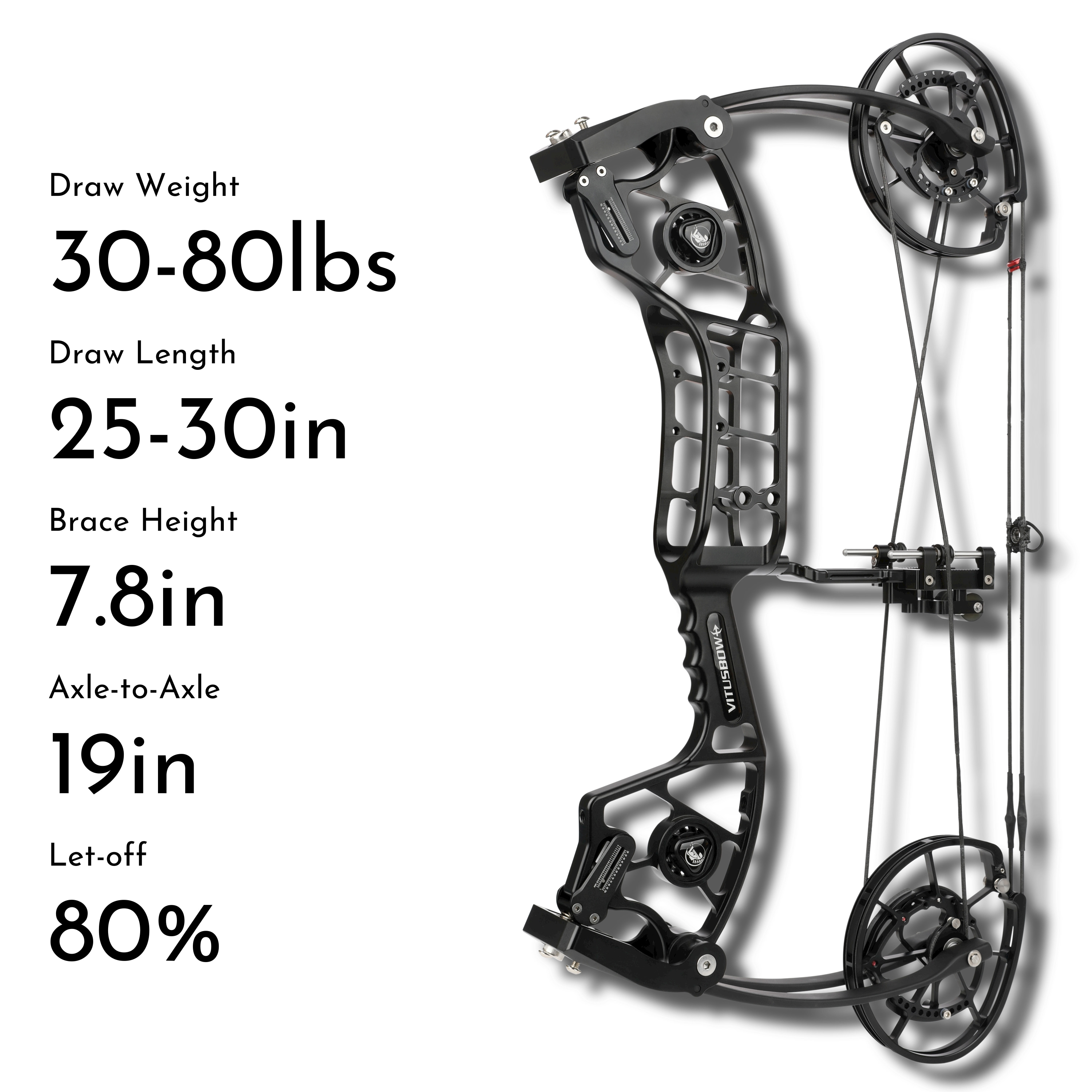 With a 80% let-off, this bow provides smooth shooting performance, reducing holding weight at full draw and allowing for accurate shots. The patented visual pound system ensures you can easily monitor the weight without requiring a separate scale, preventing issues with loose weights. The sliding chord splitter improves string alignment and accuracy, while extending the service life of the auxiliary string.
