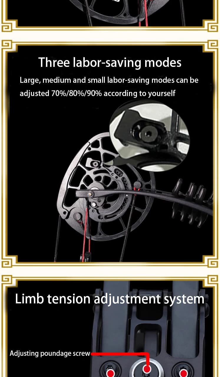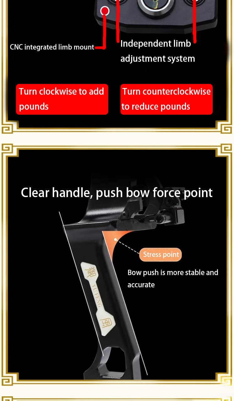 Equipped with an independent balance adjustment system and ultra-clear grip design, the center of gravity is concentrated on the bow riser, which feels comfortable and reduces vibration, helping shooters maintain higher accuracy during training or hunting.
