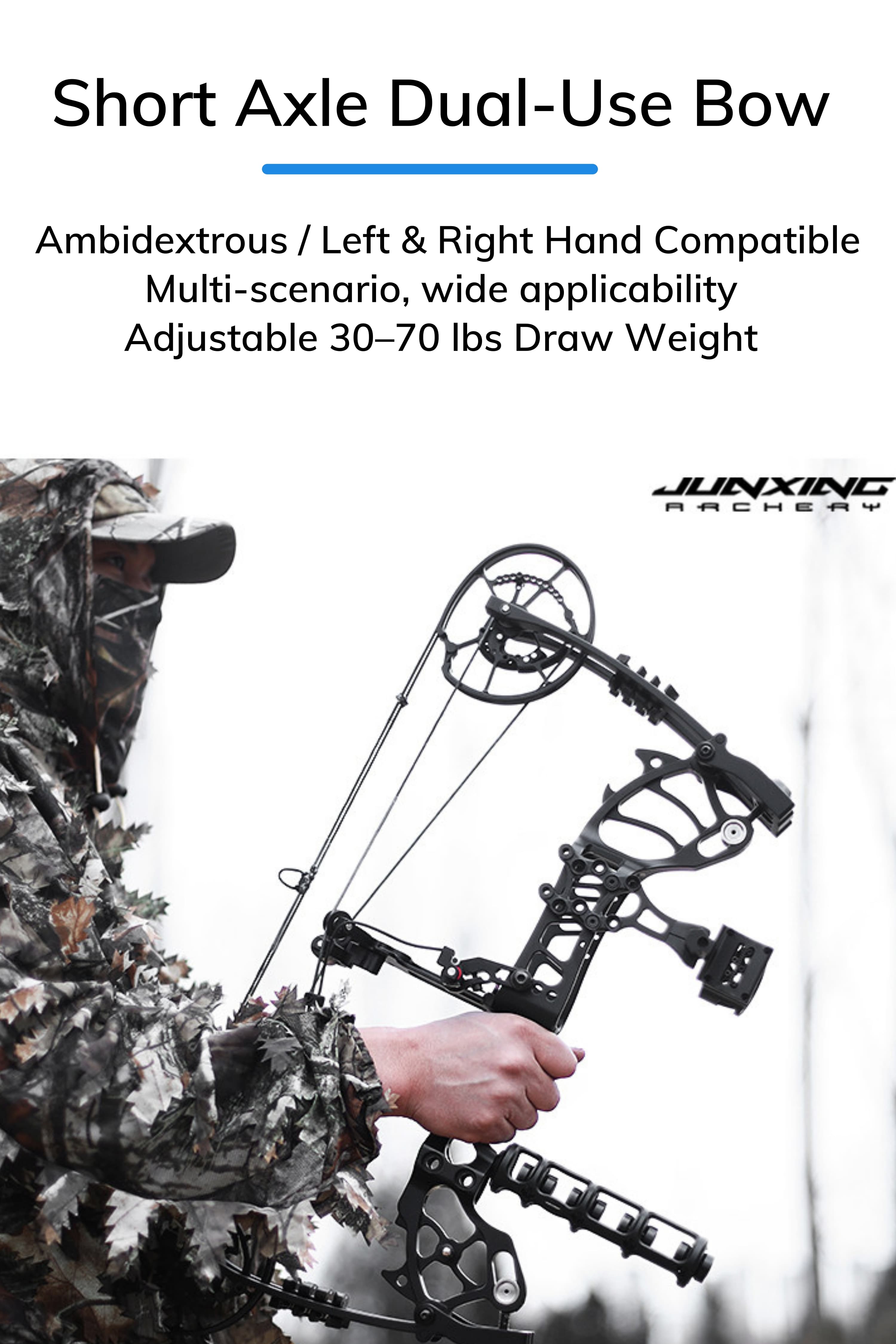 Forgiving & Versatile Design: Designed with an 83% let-off, offering steady aiming and reduced fatigue. With a fully adjustable 25-30" draw length and ambidextrous setup, it ensures a comfortable, custom fit for any archer, whether left or right-handed.