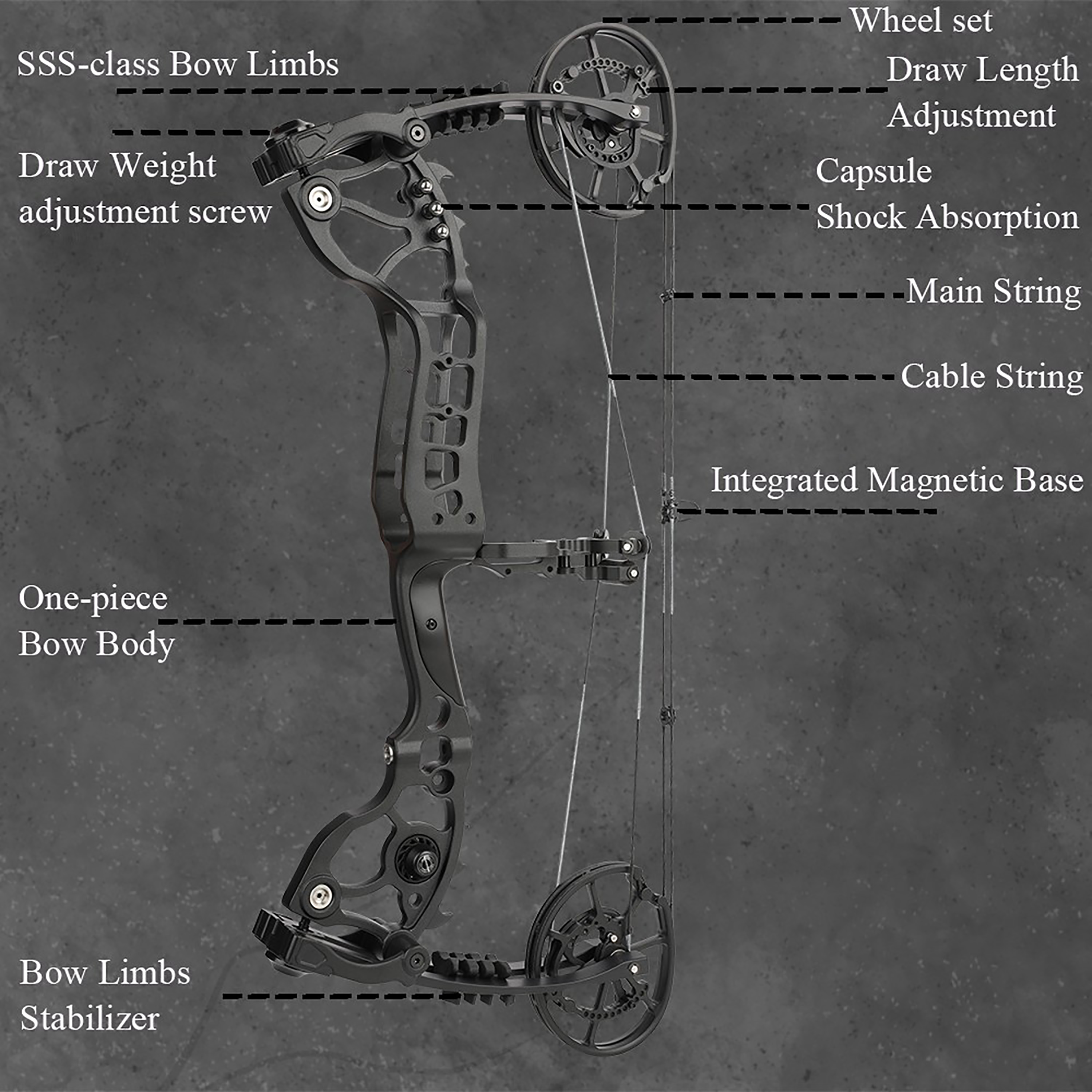 4.Efficient 80% Let-Off for Reduced Fatigue – An 80% let-off mechanism significantly lowers holding weight at full draw, allowing for longer, steadier aim and reduced muscle strain during extended sessions.
