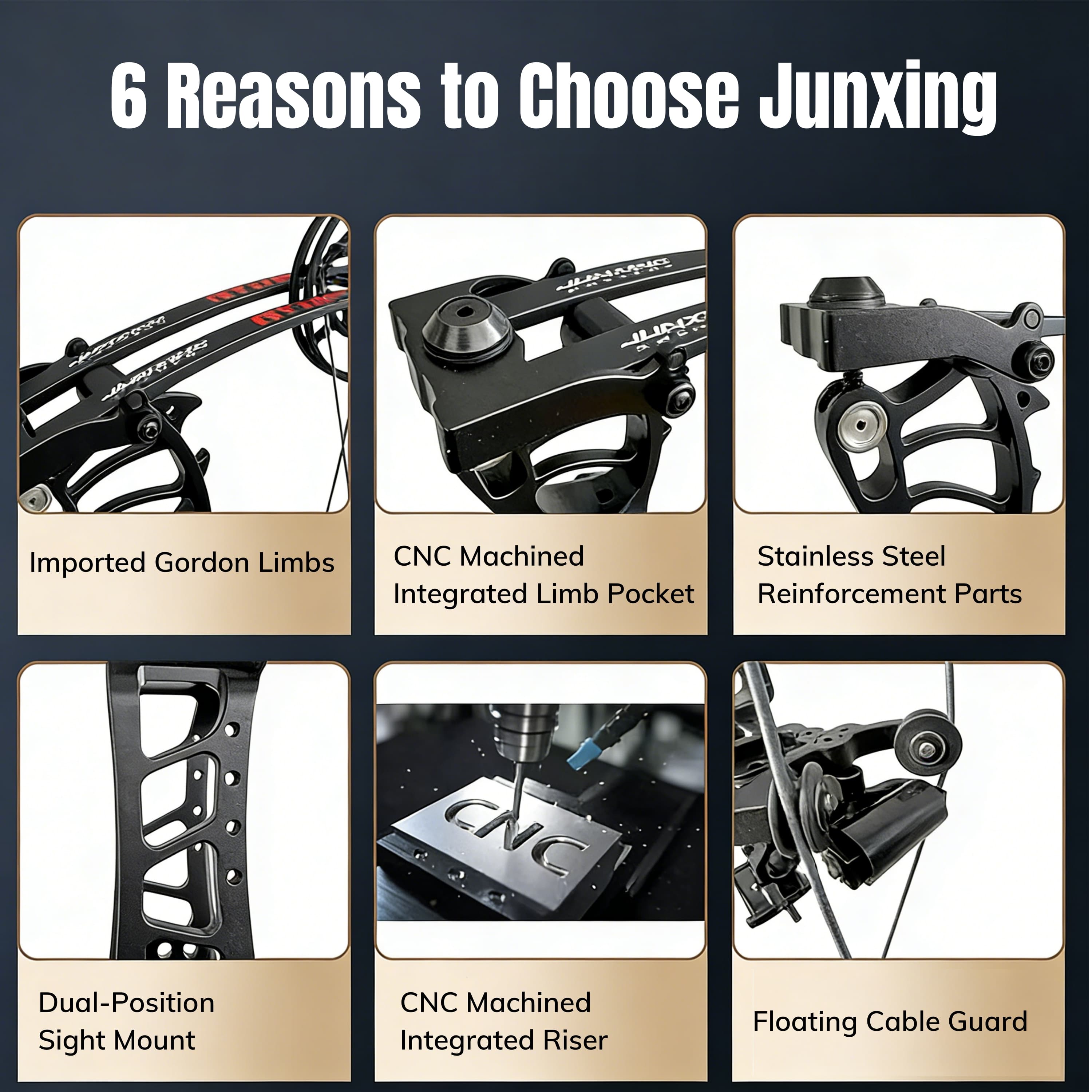 CNC Machined Precision: High-performance construction through CNC machining for superior shooting efficiency.