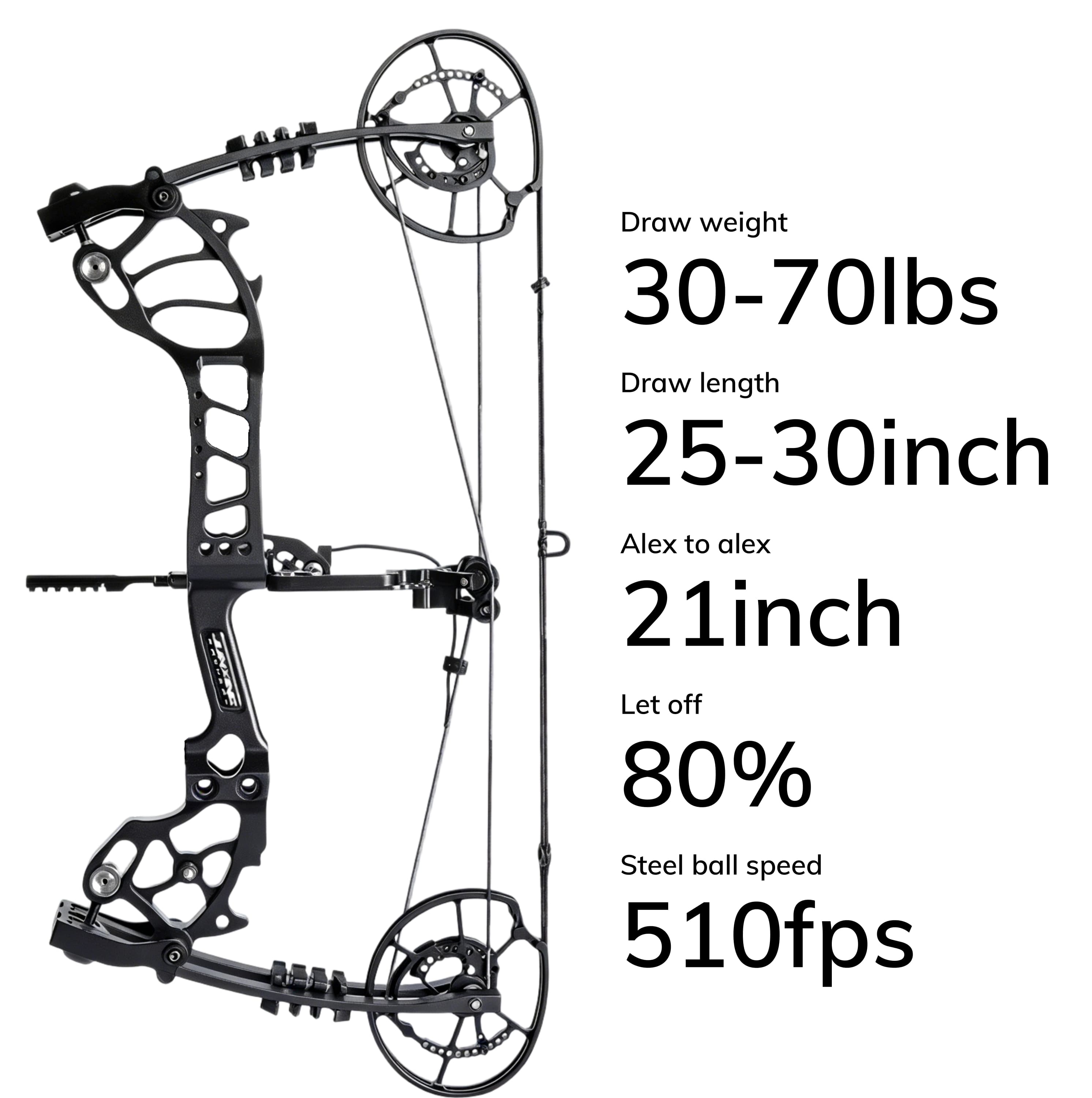 Precision CNC-Machined Aluminum Riser: Built for long-lasting durability and pinpoint accuracy, this bow features an adjustable 30-70 lbs draw weight and a blistering 510 FPS bolt speed, making it perfect for both hunting and target shooting.