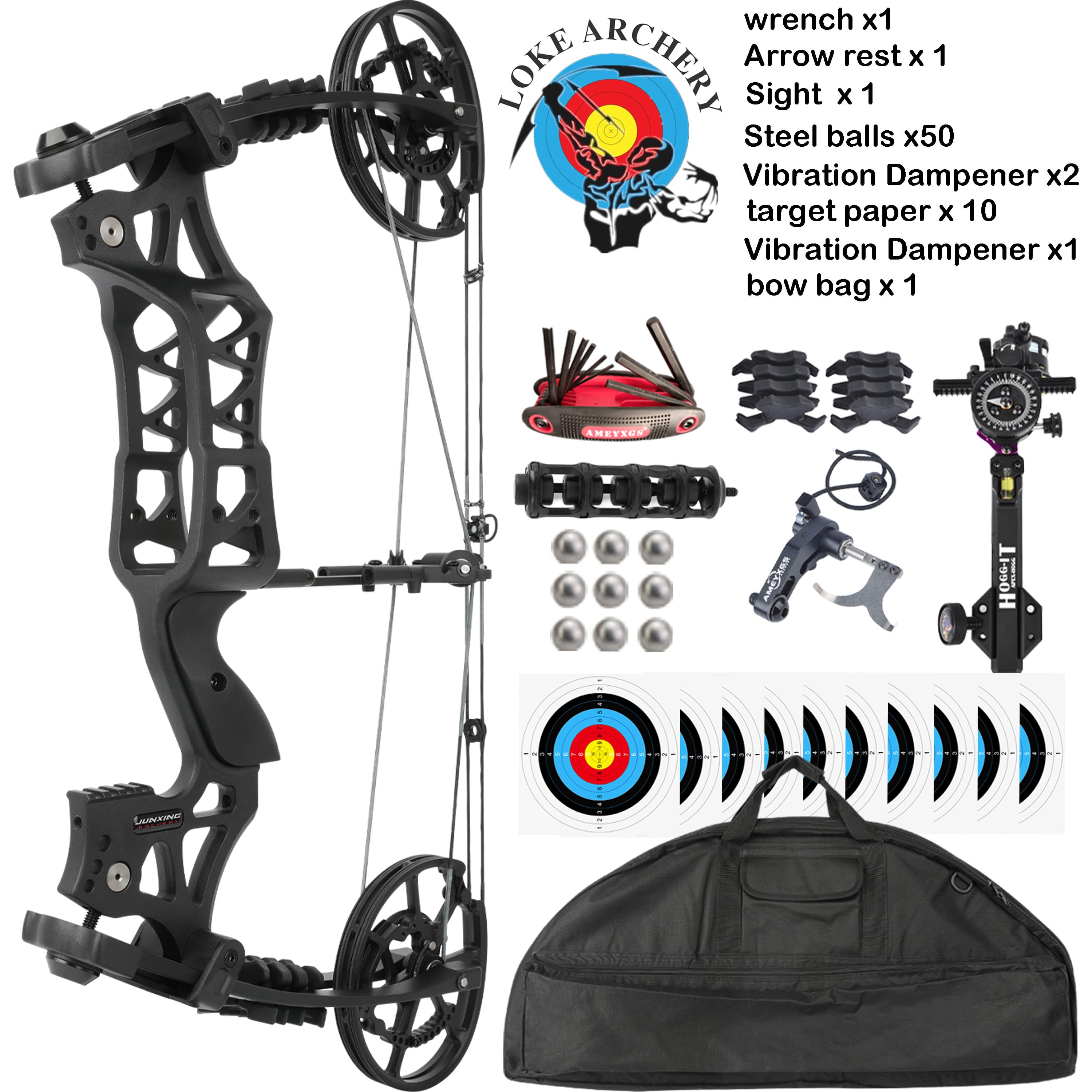 A high-performance, dual-purpose compound bow engineered to shoot both arrows and steel balls with precision. Featuring an adjustable 40-70 lb draw weight, an 80% let-off ratio, and a compact 20-inch axle-to-axle design, this bow delivers power, versatility, and ease of use for serious hunters and target shooters.