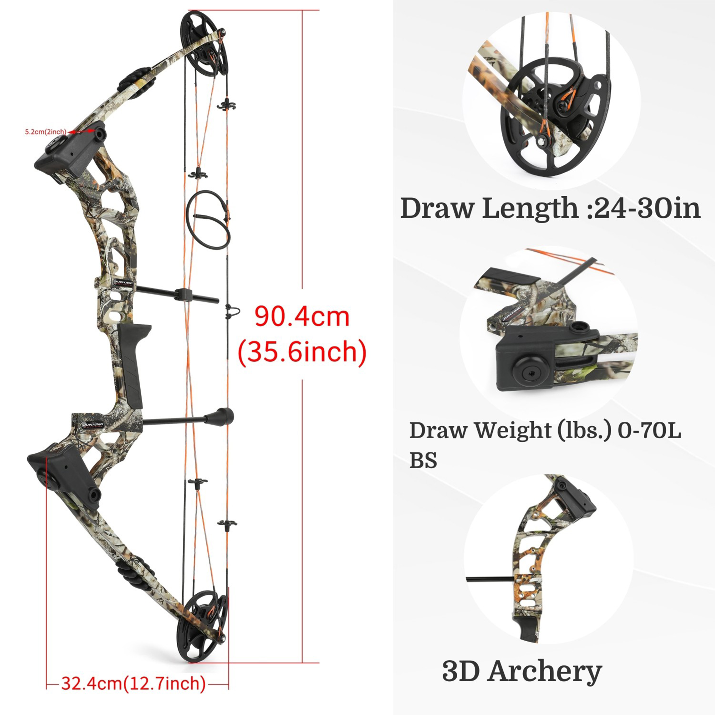 Adjustable Draw Length (24”-30”) – Customizable draw length fits both adults, teens, and beginners, allowing precise adjustment according to your arm span.