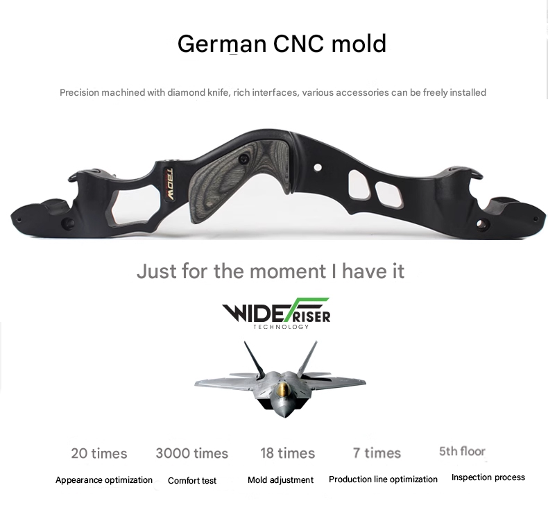 Bow riser: Made of 7075 aluminum alloy, CNC machined