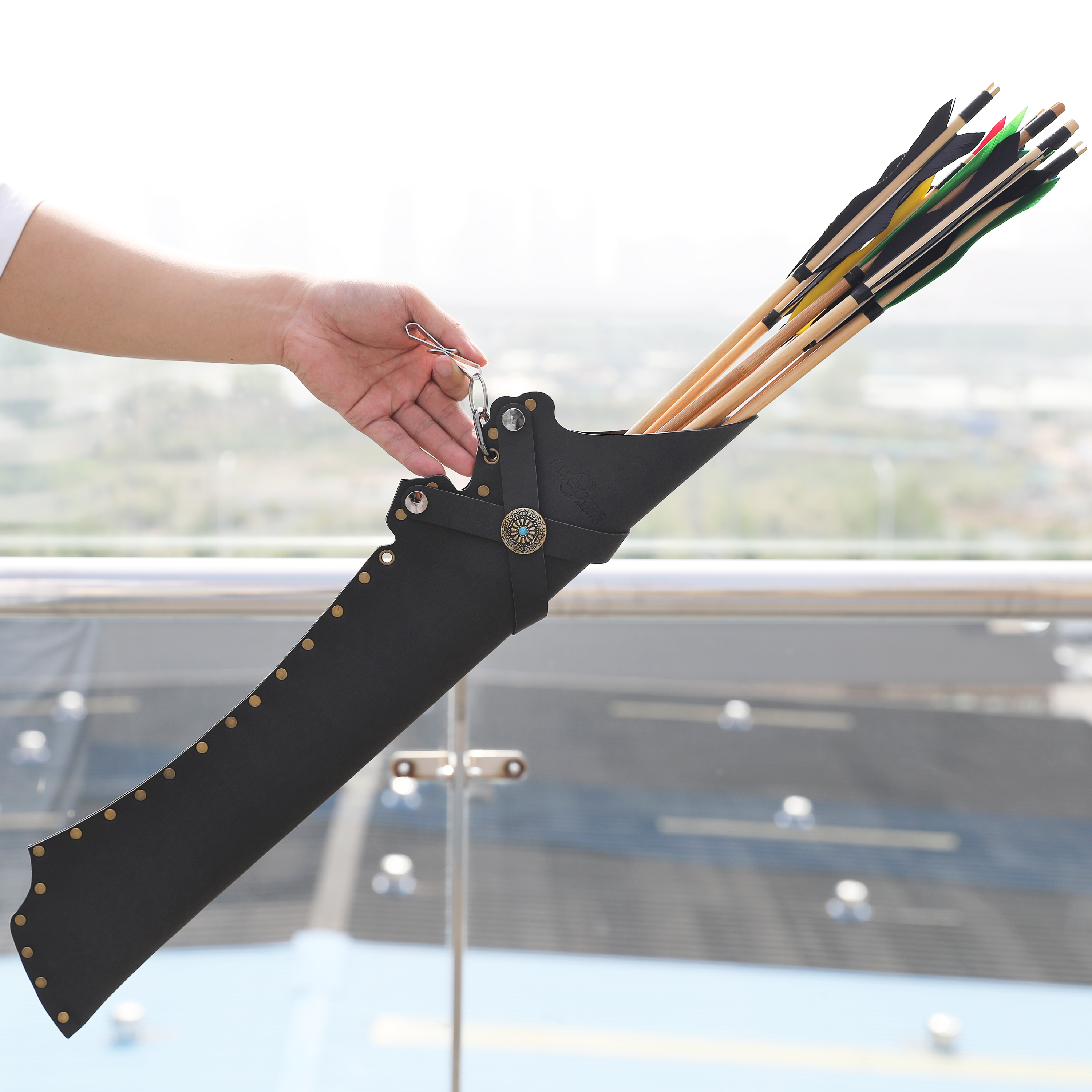 Decorative snap buttons are removable, allowing the quiver to be installed on either side. Its spacious design supports arrows of different lengths, making it suitable for target practice, training, and recreational archery.