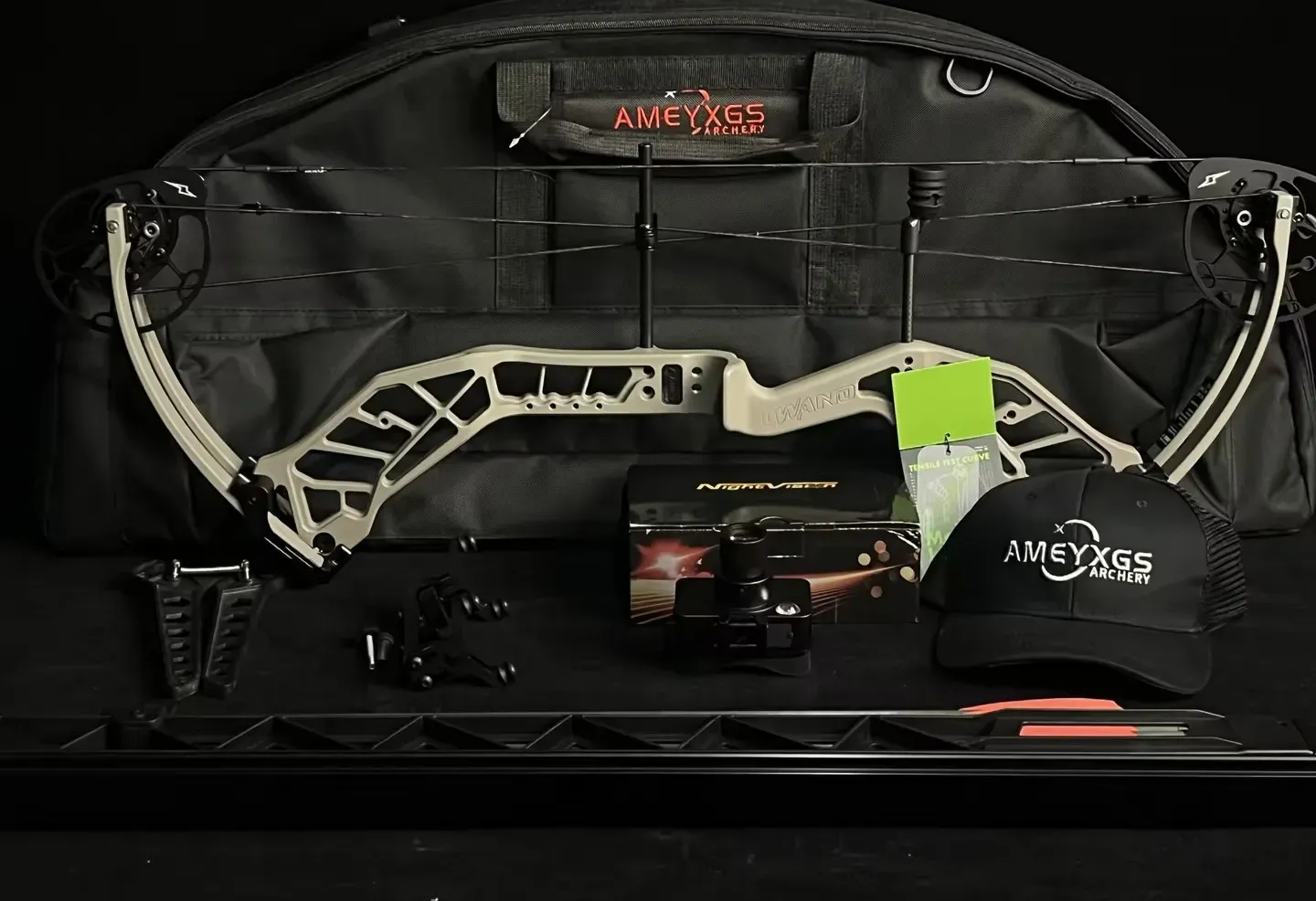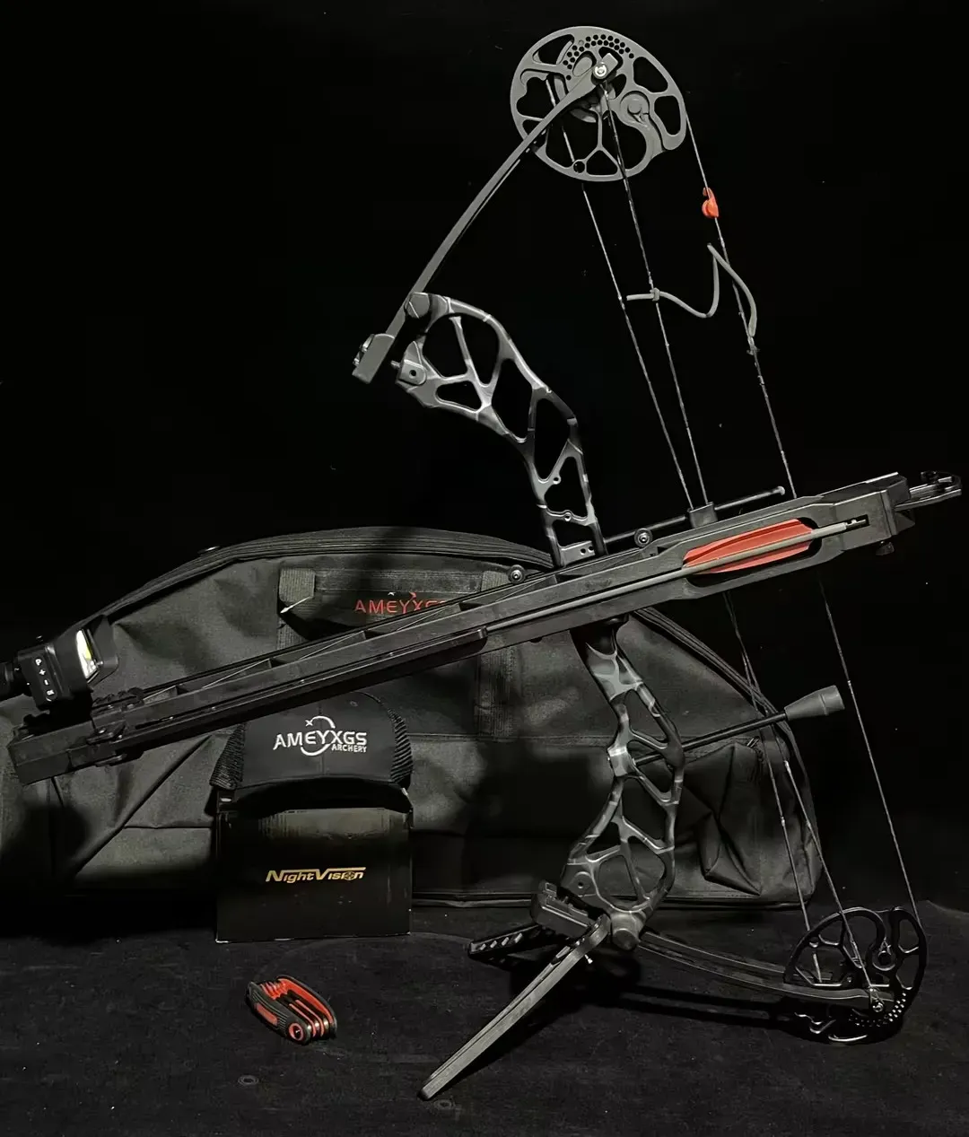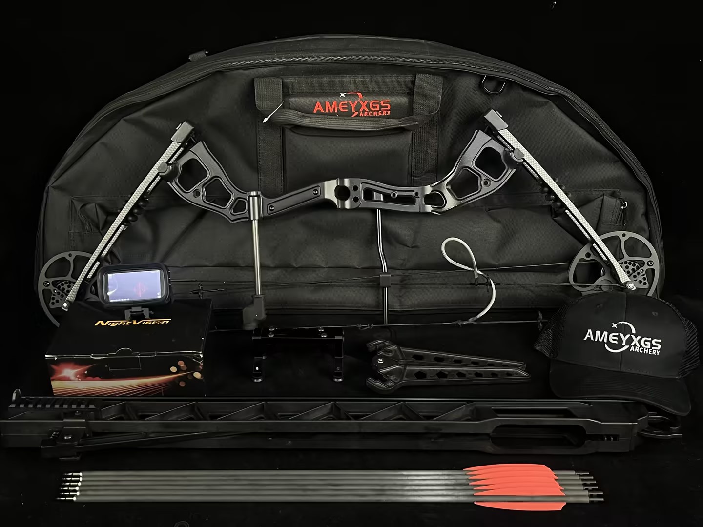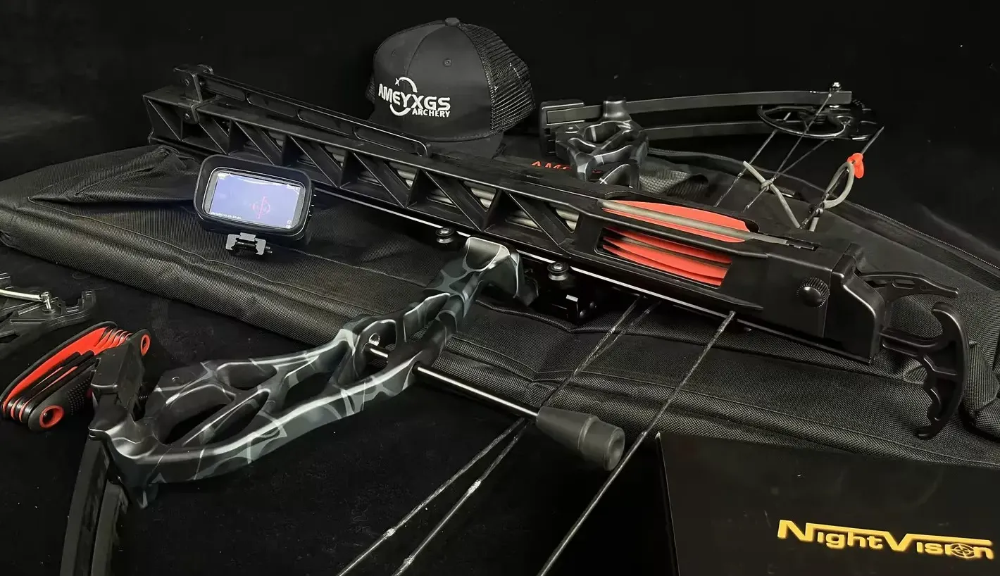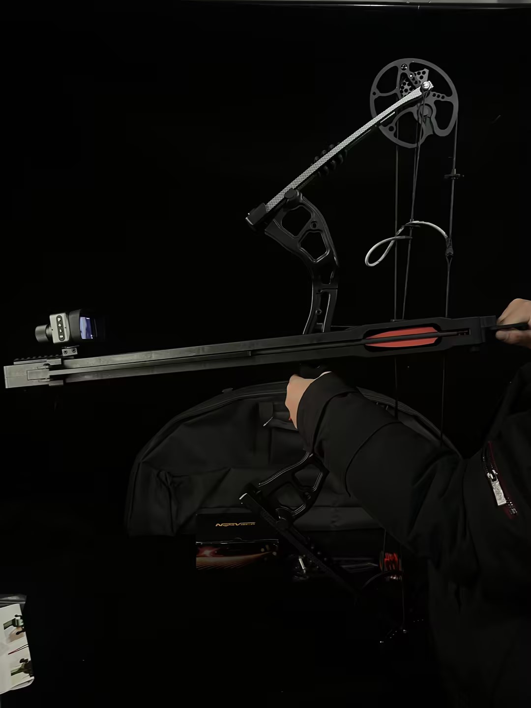This innovative rapid-shooting compound bow kit combines high-performance engineering with tactical night vision technology — built for hunters, survival enthusiasts, and serious outdoor shooters.