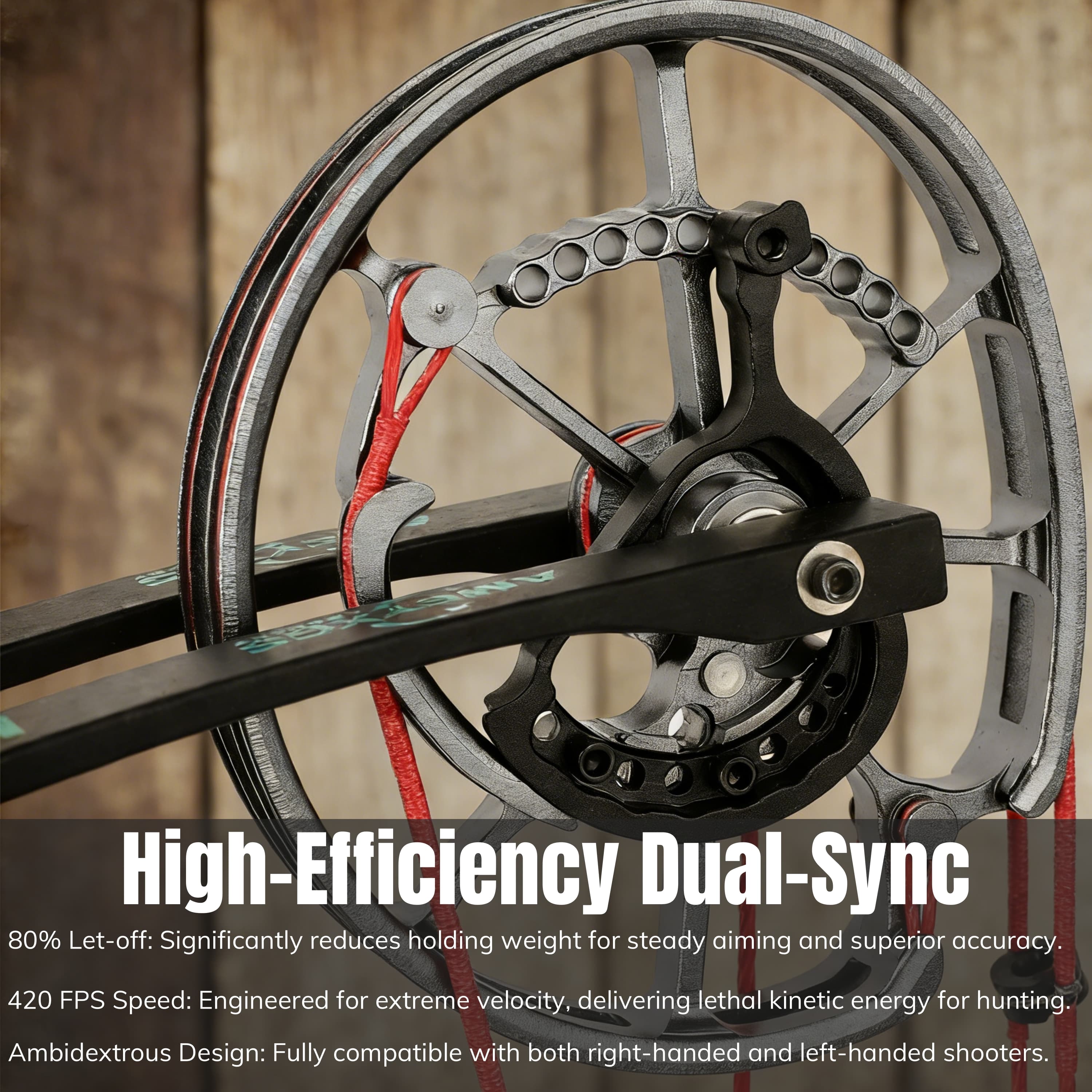 80% Let-off cam produces holding weights that help keep you accurate and fires arrows at 420 fps.
