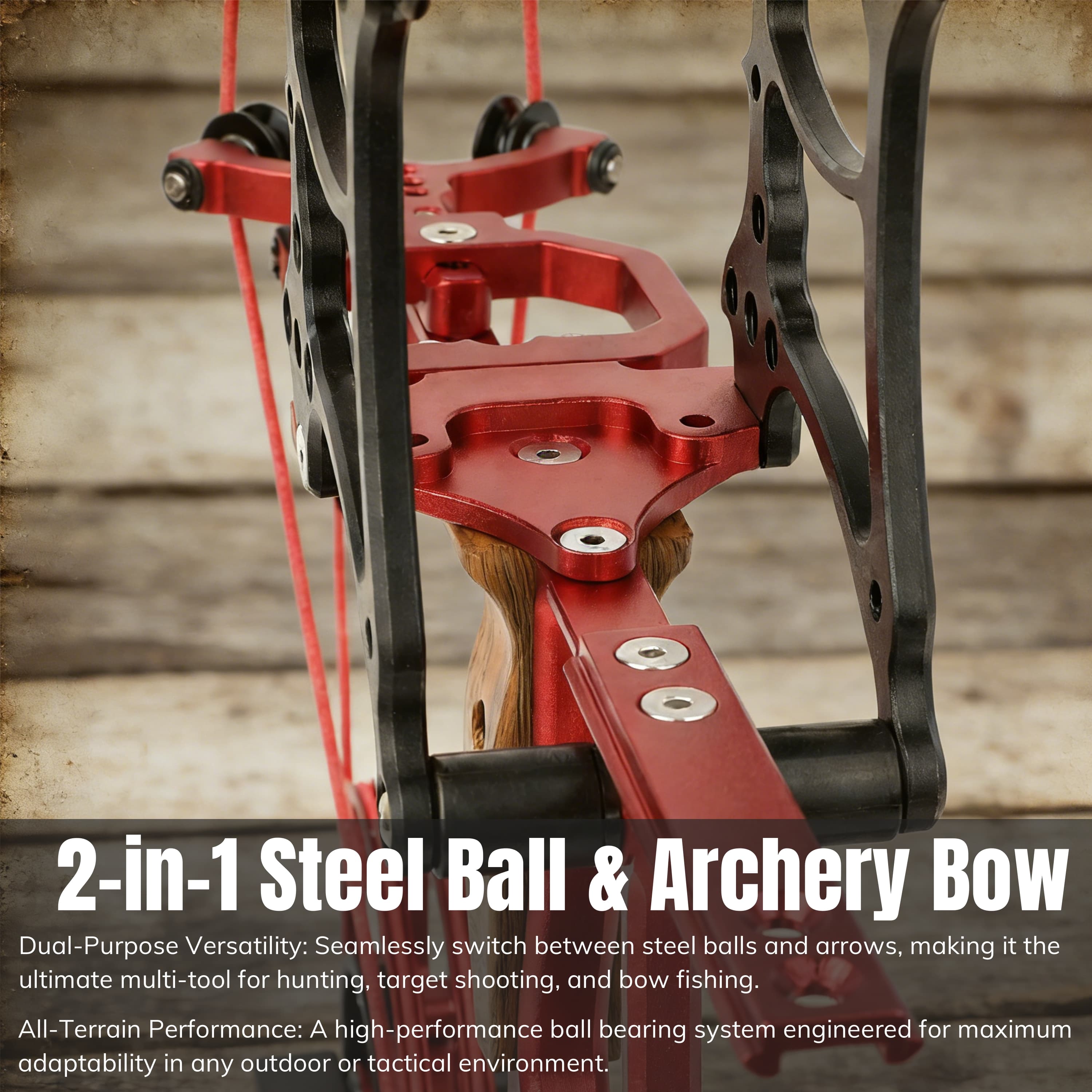 This is a ball bearing dual-purpose compound bow that can be used to shoot steel balls and arrows for outdoor hunting, shooting and bow fishing.