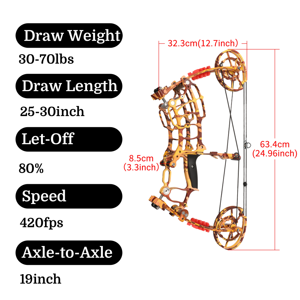 80% Let-Off Efficiency – Innovative cam system reduces draw weight by up to 80%, providing effortless pulling power for longer shooting sessions.