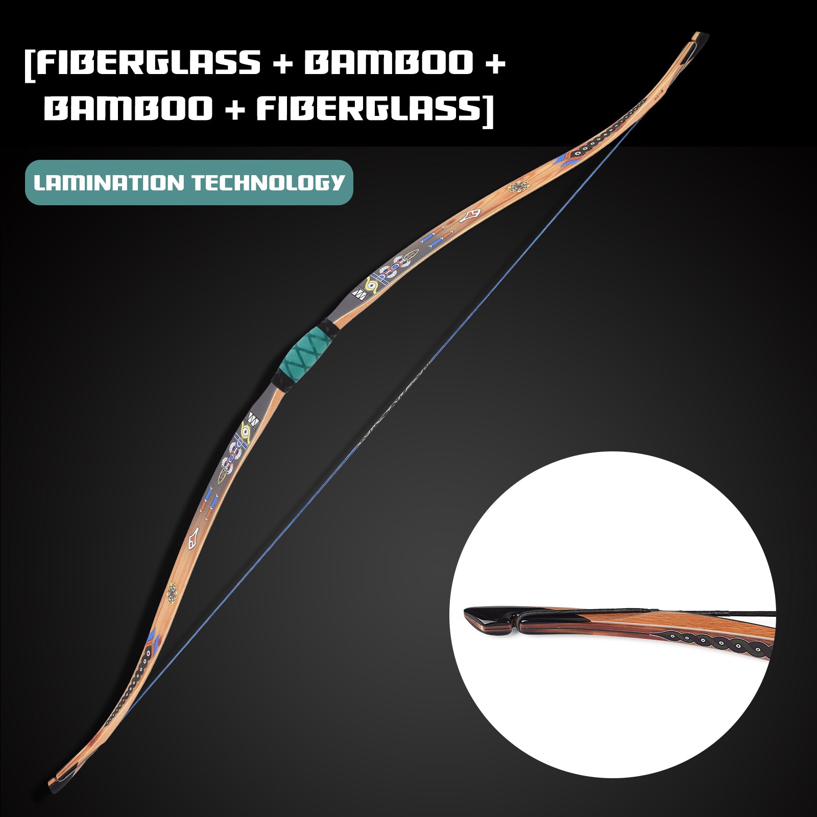 The bow blade is made by lamination process, which is laminated by glass and bamboo sheets, which can store more energy better.