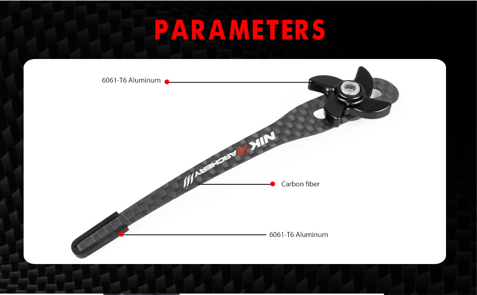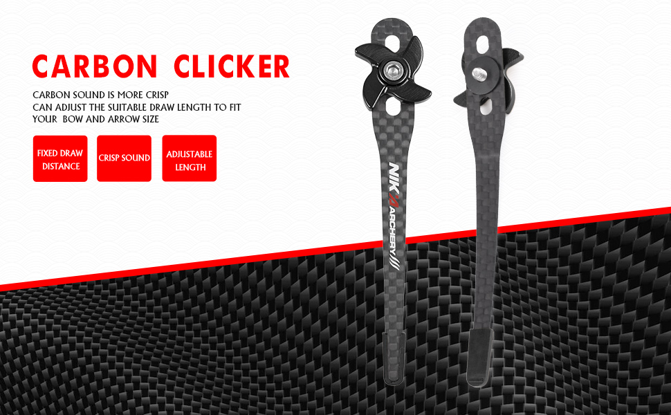 Nika Carbon Clickers, a revolutionary tool that increases shooting accuracy and is elongated to fit your specific bow size. Featuring a non-slip design and a sturdy one-piece mounting bracket, each clicker is made from durable carbon fiber and carefully packaged in a secure blister pack.