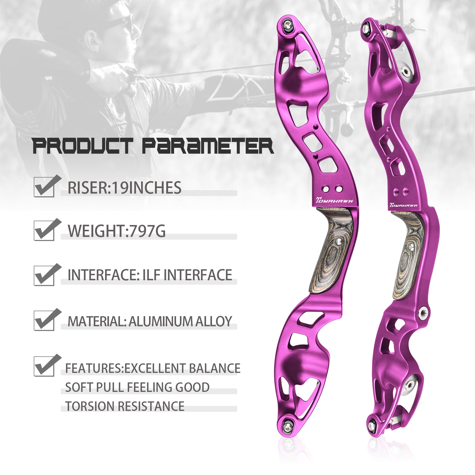 • Bow riser only: Nika ET-10 Tomahawk Competition Bow Riser