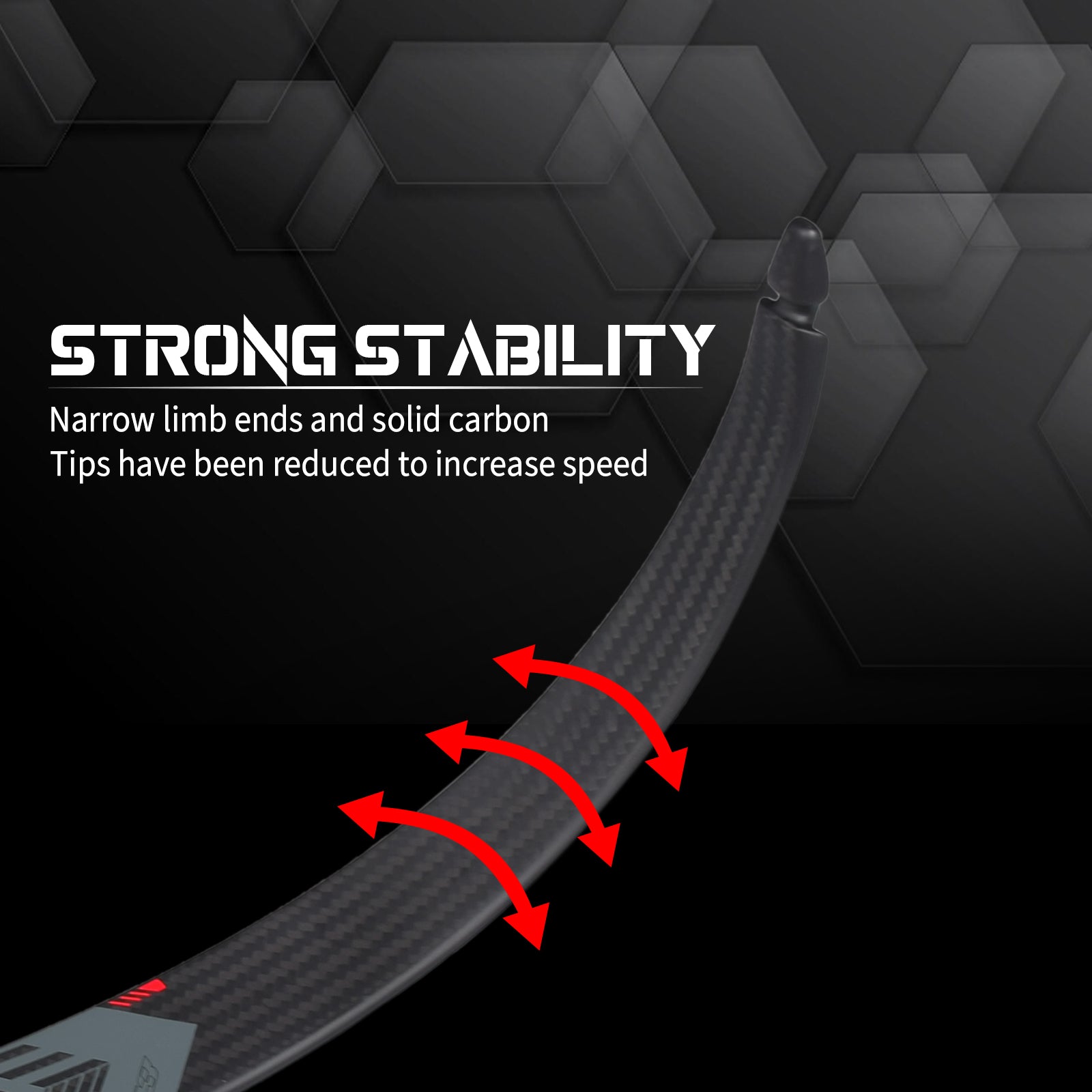 Narrow limb ends and solid carbon tips have been reduced to increase speed, strong stability.