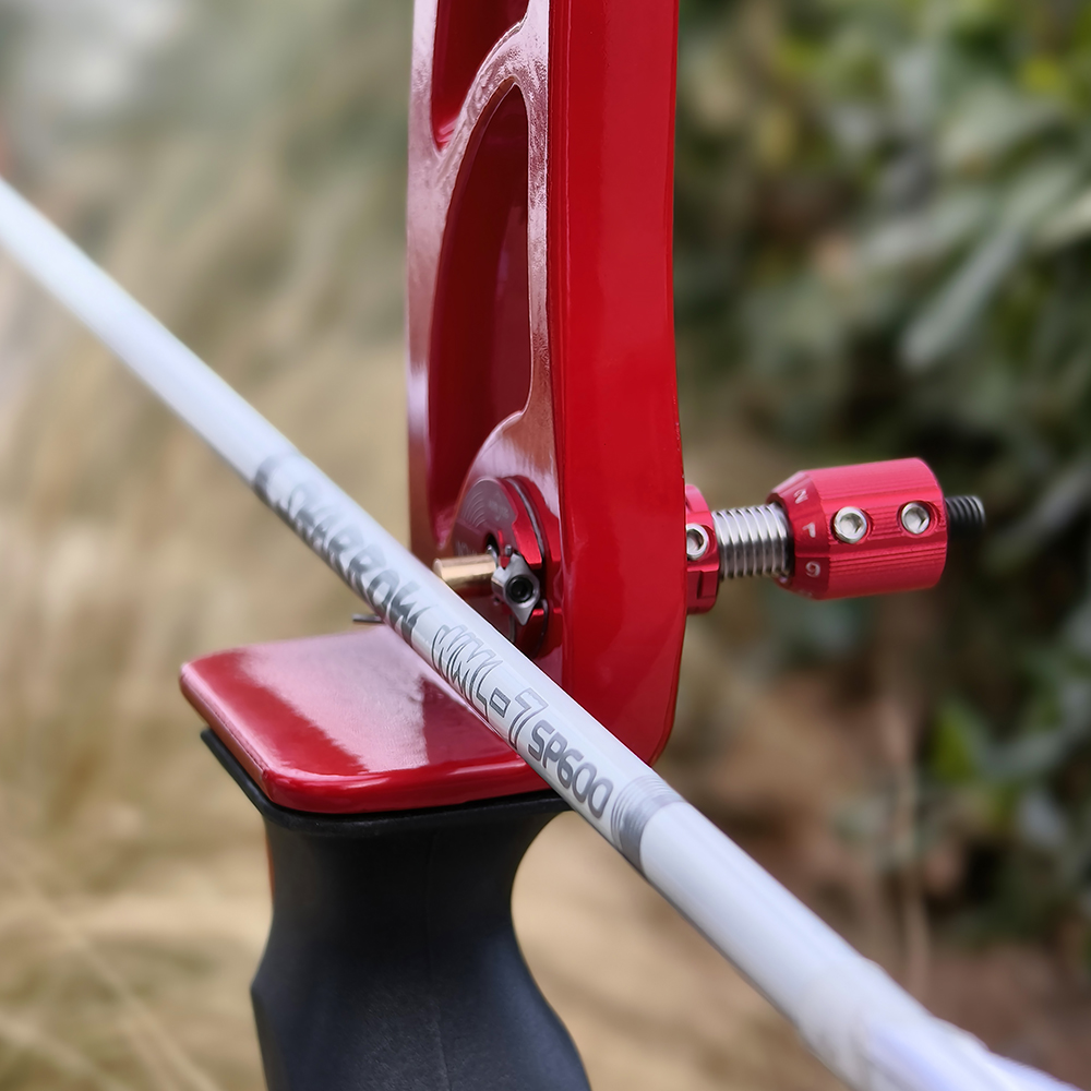 This NOVA arrow side pad is specially designed for recurve bows. It optimizes arrow trajectory, minimizes vibration, and ensures unmatched consistency shot after shot. Equipped with an adjustable spring mechanism, the hardness is precisely calibrated to match the bow's draw weight and arrow spine. The integrated spring tension dial and pre-marked hardness scale allow for easy fine-tuning, ensuring optimal energy absorption and release for a stable flight. Made of stainless steel for added durability and a non-abrasive polymer sleeve to protect the arrow shaft for durability and gentle handling