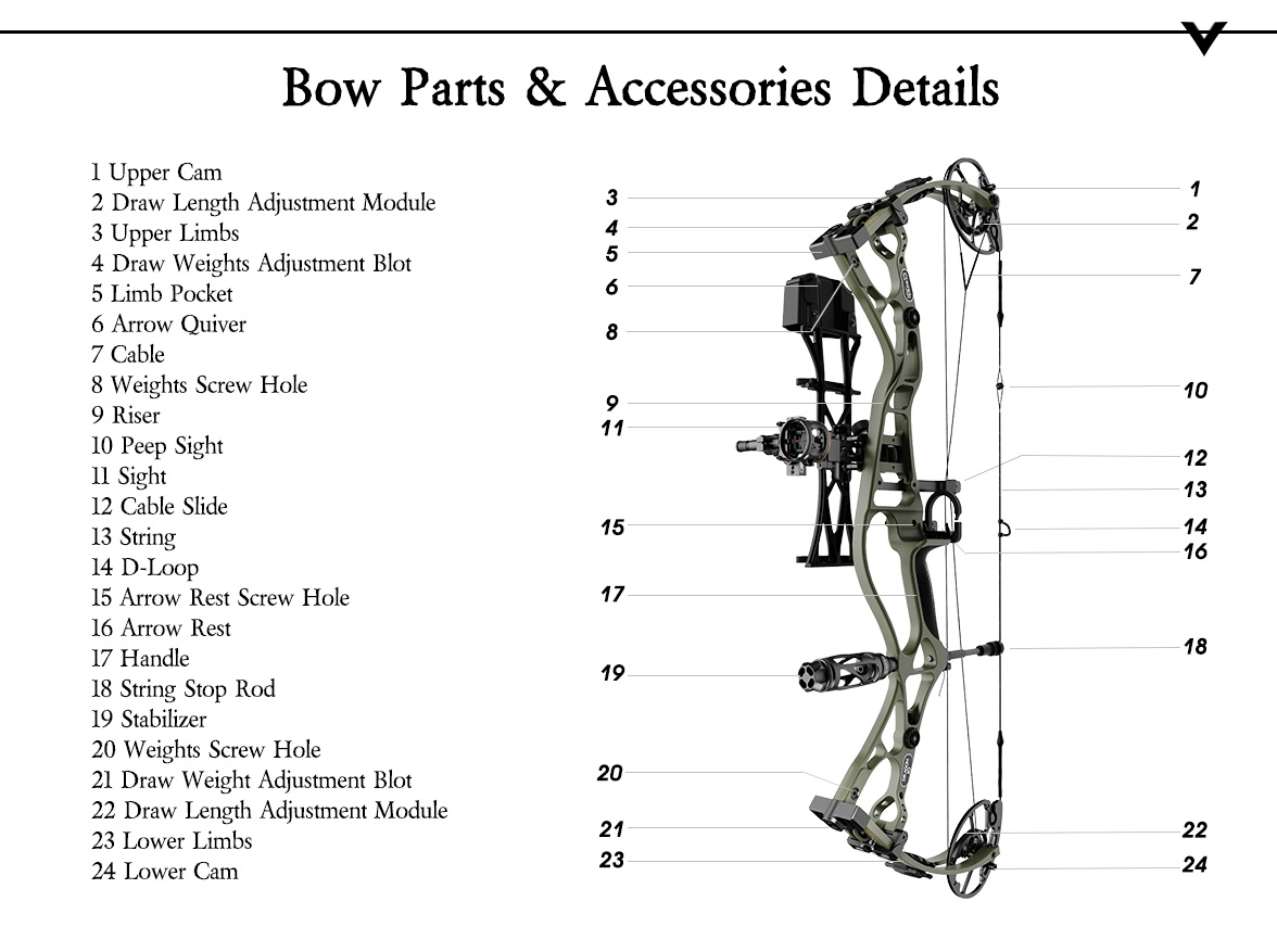 • Accessories: 1×arrow box + 1×sight + 1×arrow rest + 1×shock absorber
