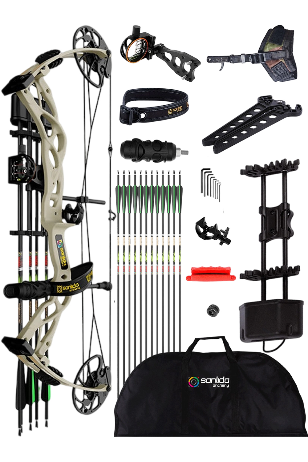 • Comes with a full kit of Sanlida Dragon X9 advanced and improved hunting compound bow accessories which are designed and manufactured by Sanlida.