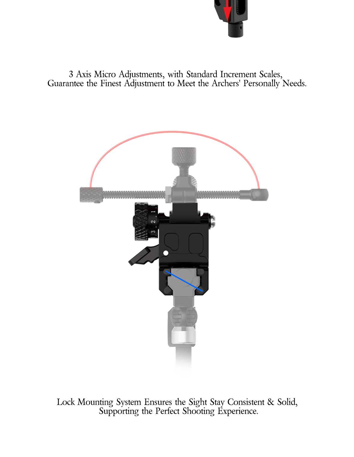 • The wide range of left and right adjustments is fast without a wrench, making it faster to adjust the aiming point.