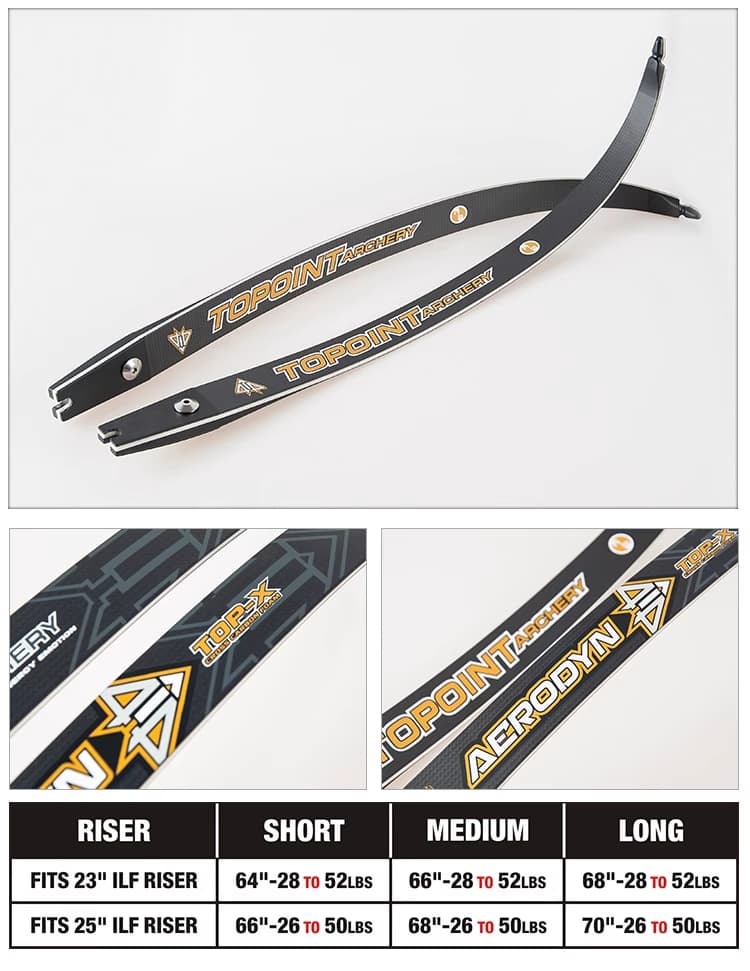 ILF Fitting:The Topoint Unison carbon foam limbs follow the international limb fitting system (ILF) and are guaranteed to fit in all ILF compatible risers. A good choice for archers who plan to shoot long distances with light draw.