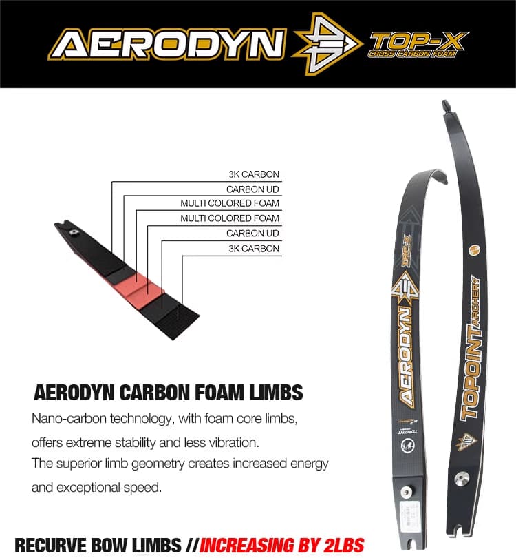Superior Material:Carbon/Foam limbs are fast, lightweight and flexible thanks to the use of unidirectional and crossed carbon fibers and foam. Its technology guarantees limbs will not twist and remain unaffected by weather conditions.