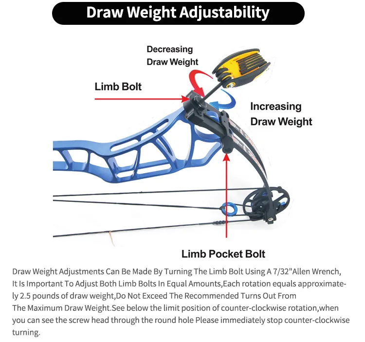 This target compound bow offers a choice of large and small wheel sets. The large wheel set has an adjustable draw length of 27-31 inches, while the small wheel set has an adjustable draw length of 24.5-27.5 inches, making it suitable for various groups of people.