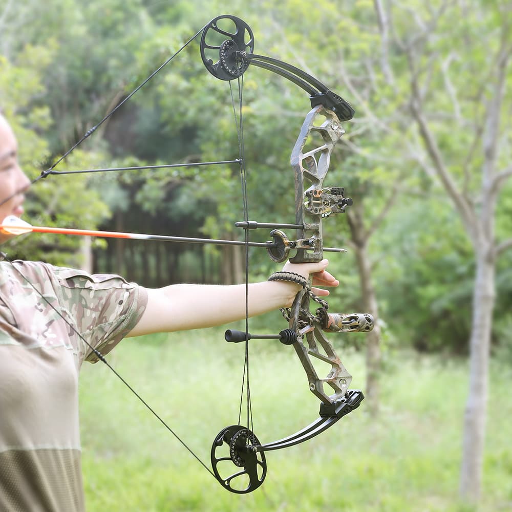 The Topoint T1 Max compound bow uses anodizing or camouflage water transfer to make its color more textured. The aluminum alloy CNC milling bow handle is harder and increases its stability. The CNC-processed curved cam improves durability