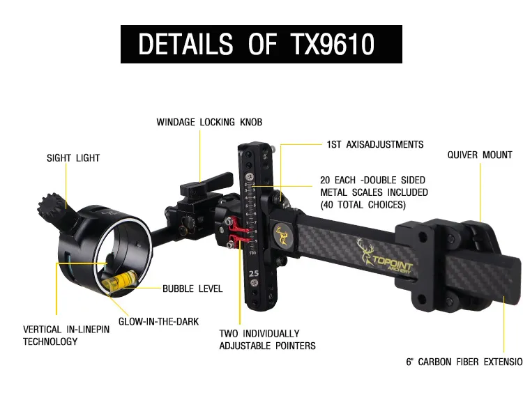 • Sight only: Topoint TX9610 Micro Adjustable Carbon Bow Sight