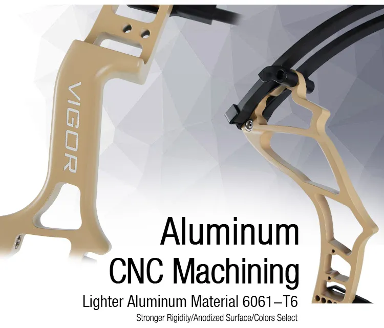 The bow riser is made of aviation-grade aluminum alloy CNC machining, which is lighter and more rigid.